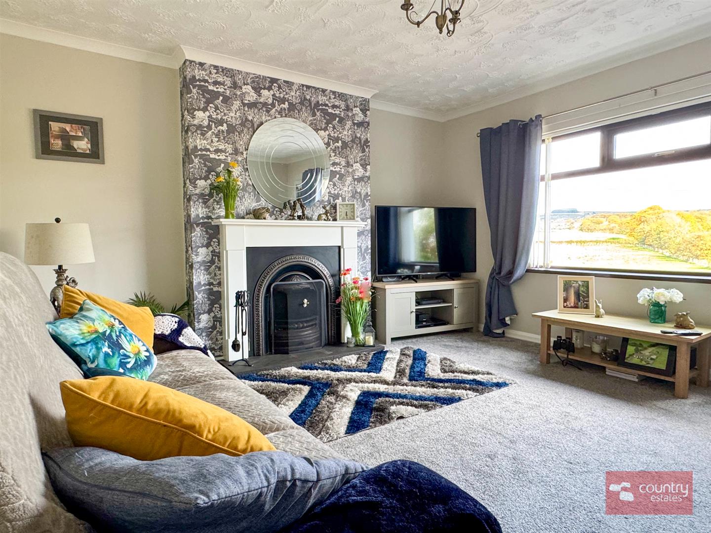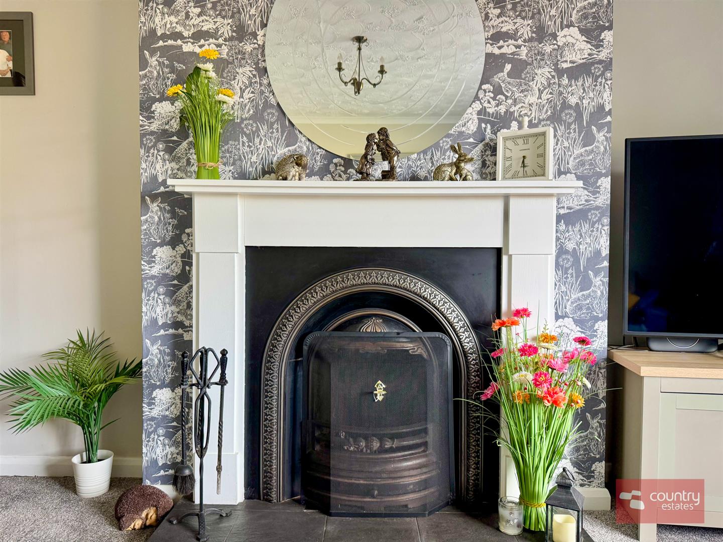 LOUNGE 15'6" X 13'7" (4.72m X 4.14m) Attractive horseshoe style cast iron fireplace with tiled slate hearth and painted wooden surround. Picture style window with far reaching views over surrounding countryside.