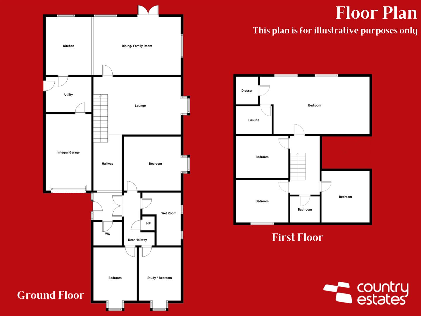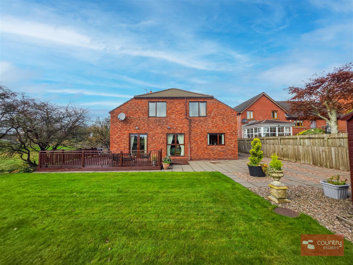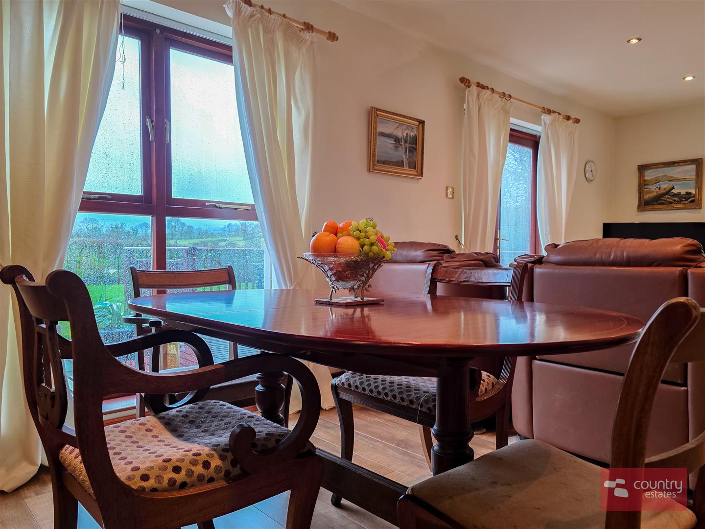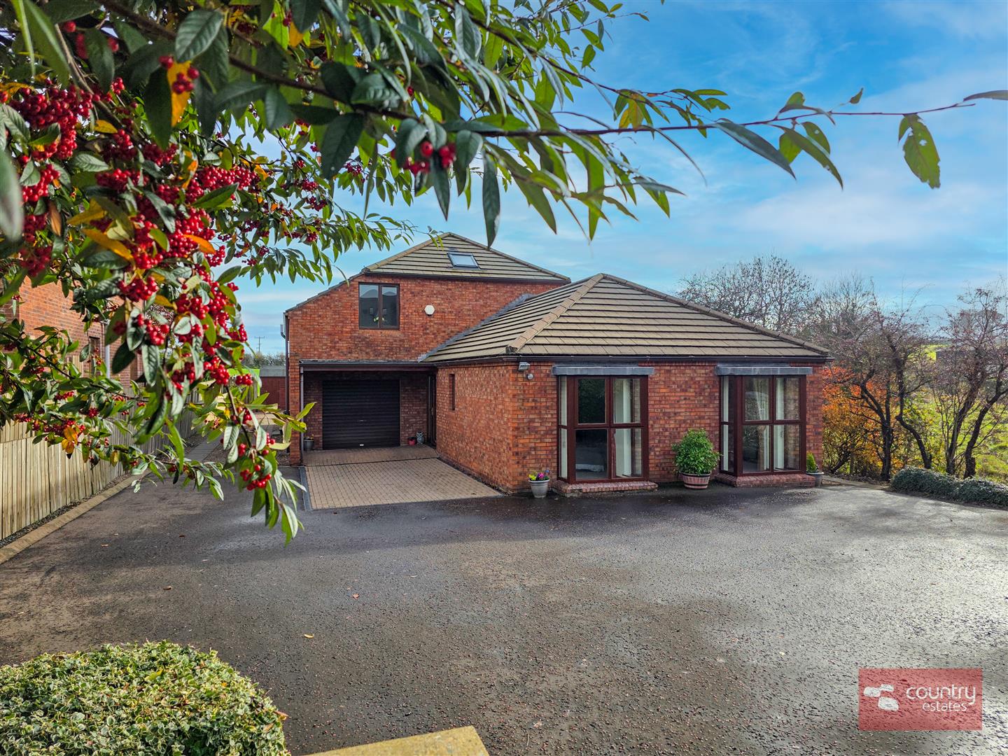 A unique, architect designed detached villa spanning circa 3000sqft, set on a generous south-facing site with uninterrupted countryside views. Enjoying a well planned living layout, the home offers highly flexible accommodation with 6/7 well proportioned bedrooms, a bright, spacious lounge with vaulted pine panelled ceiling, an open-plan kitchen and family living area with French doors to the garden, separate utility room, ground floor furnished cloakroom and wet room, master bedroom with ensuite and a modern first floor bathroom.