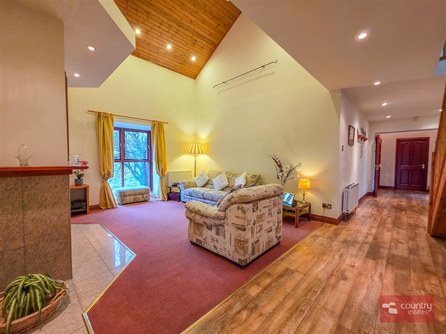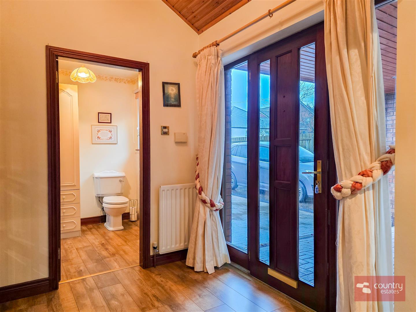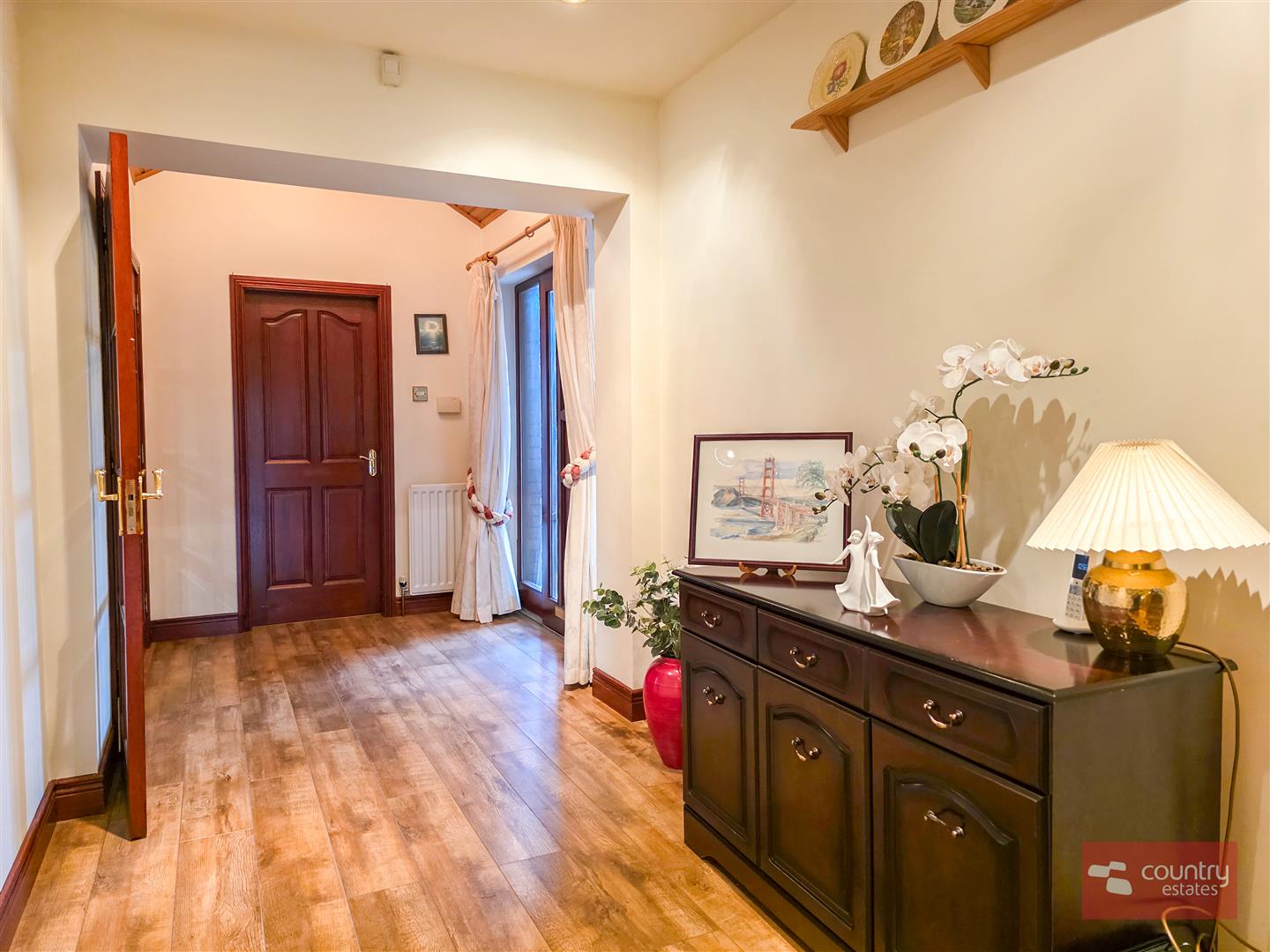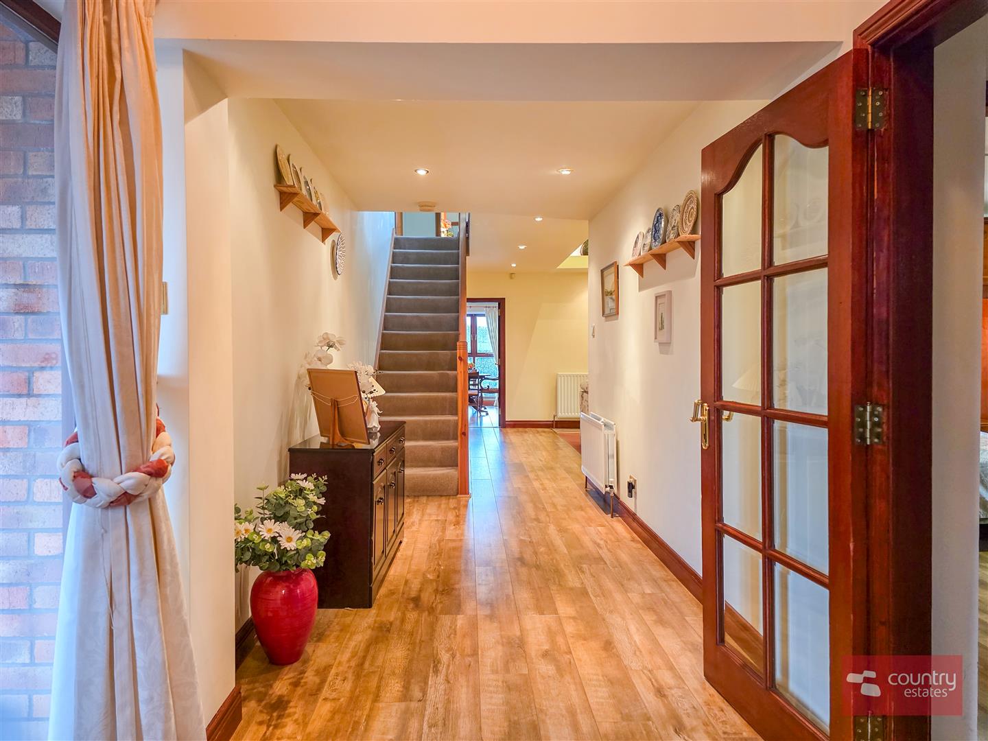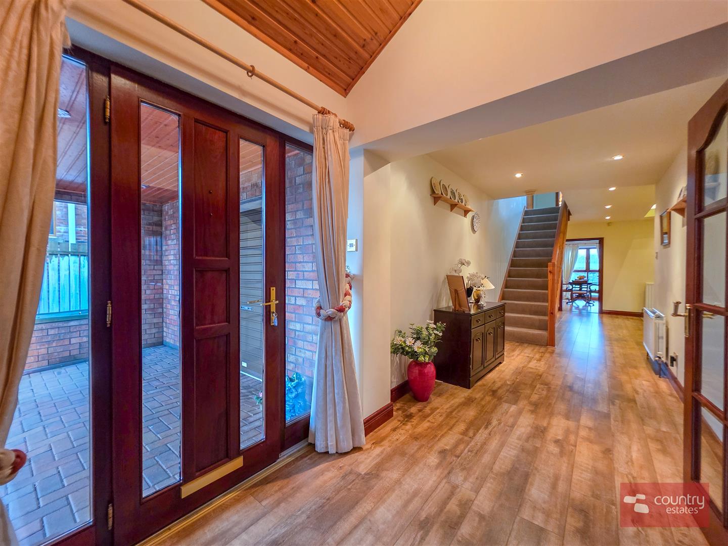 Hard wood double glazed front door with matching side screens into spacious well presented entrance hall. Quality laminate flooring extending into Hallway. Vaulted Pine panelled ceiling.