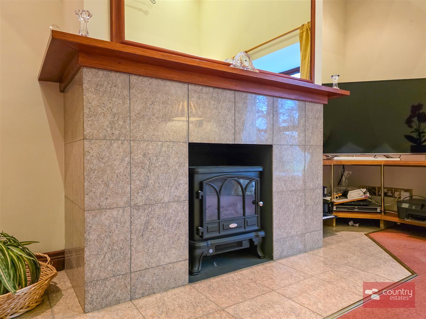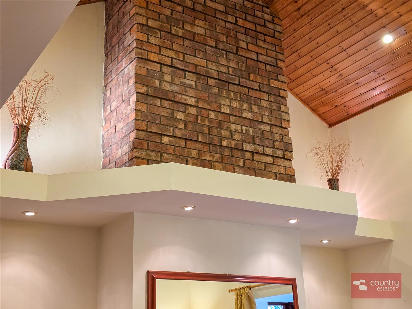 Attractive feature tiled fireplace. Feature pine panelled vaulted ceiling. Recessed downlighting. Bay window.