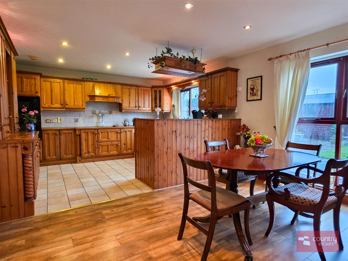 Open Plan Pine Fitted Kitchen with Dining Aspect and Family Living Area