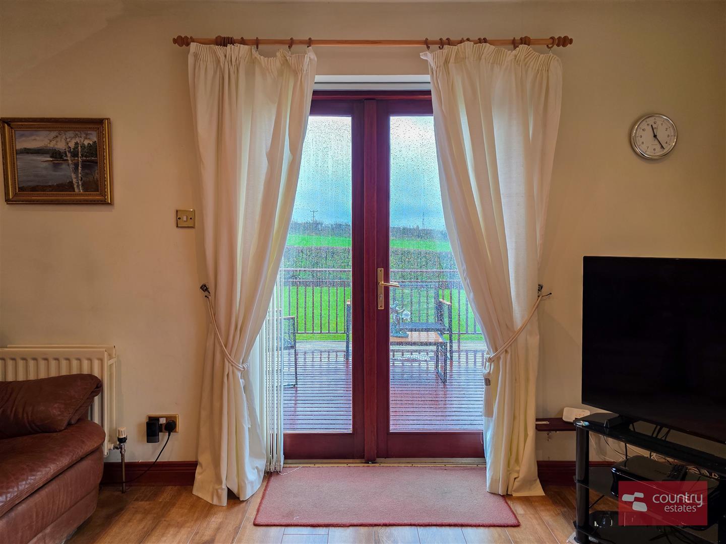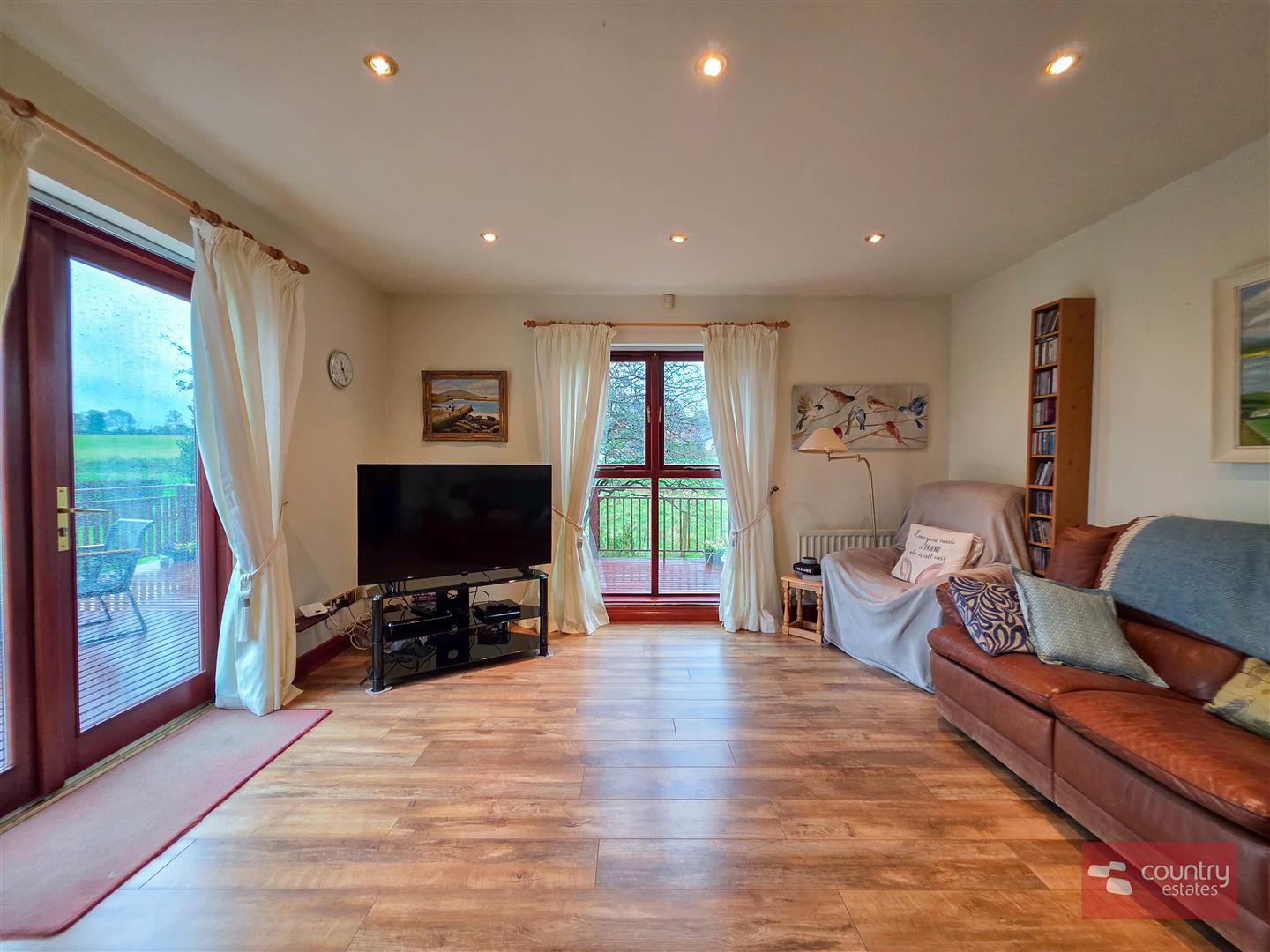 Quality laminate flooring. Recessed down lighting. Dual picture style windows with views to side and rear aspect. Hard wood double glazed French doors to rear decking and garden.