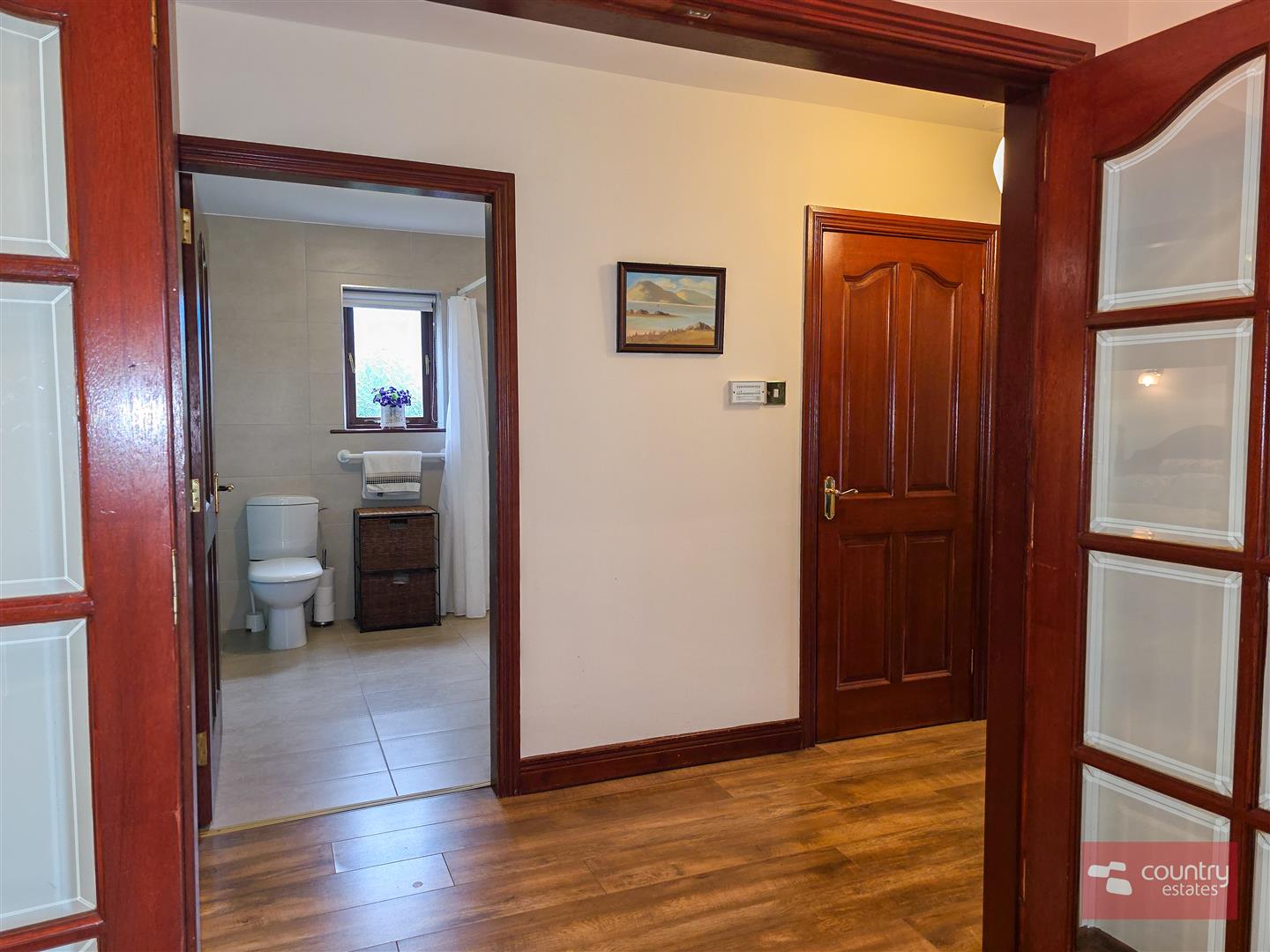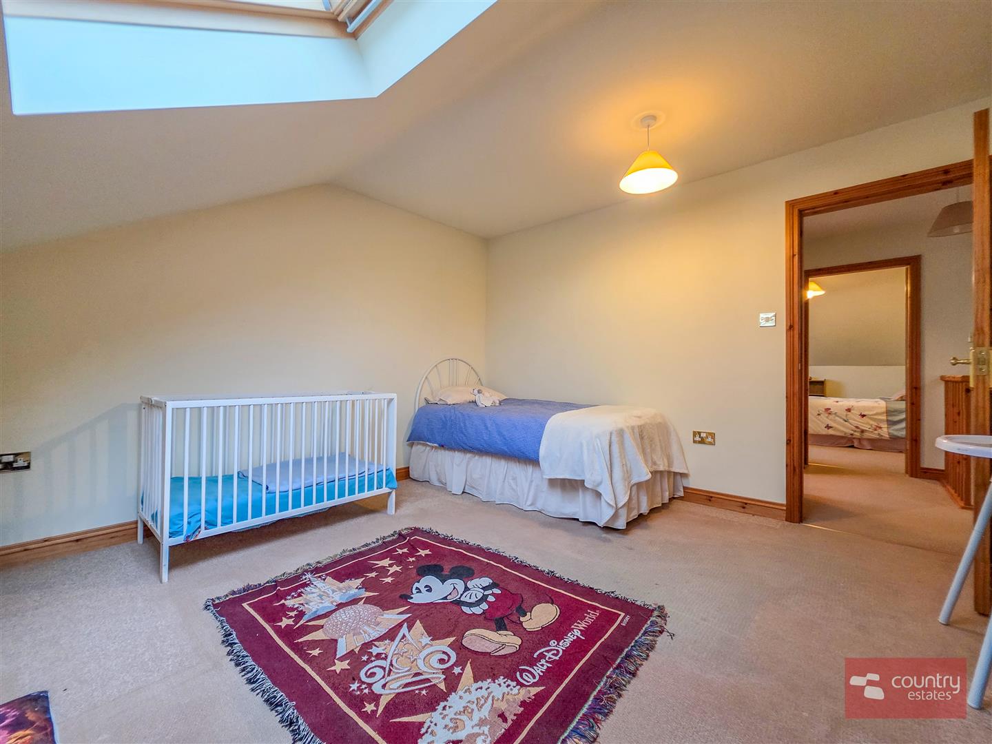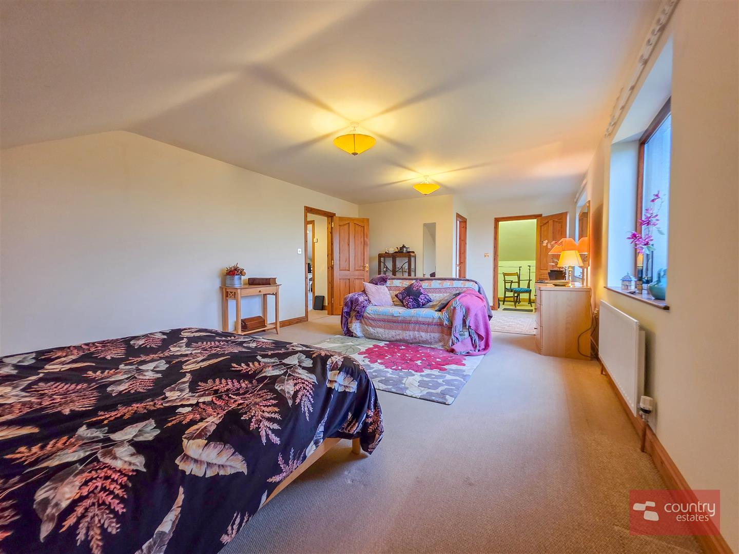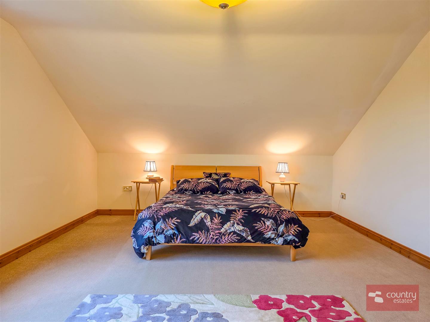 Spacious master bedroom with quality laminate flooring. Dual window aspect with extended views over surrounding hills and fields. Walk-in wardrobe.