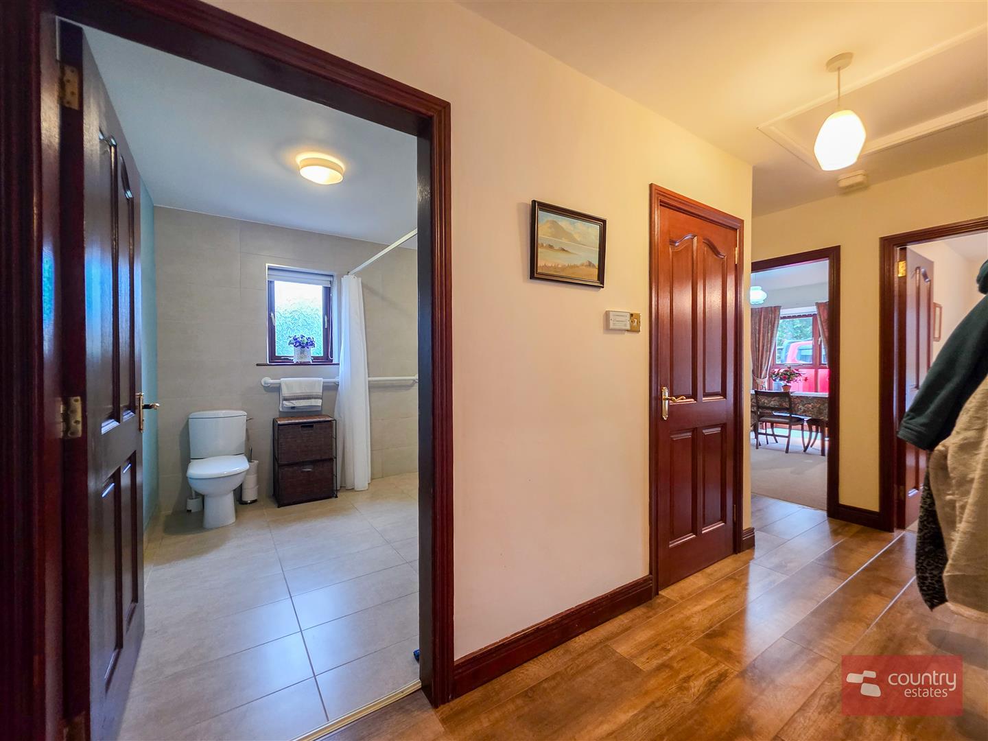 A section of the property has the potential to function as an independent annex/granny flat, making it ideal for multi-generational living, two bedrooms, a study and a four piece family wet room. The property further benefits from oil-fired central heating, double glazing, and a spacious integral garage equipped with power and light. Externally the property enjoys extensive parking to the front and side, and a private enclosed south facing garden, laid in lawn with paved patio areas and decking for entertaining.