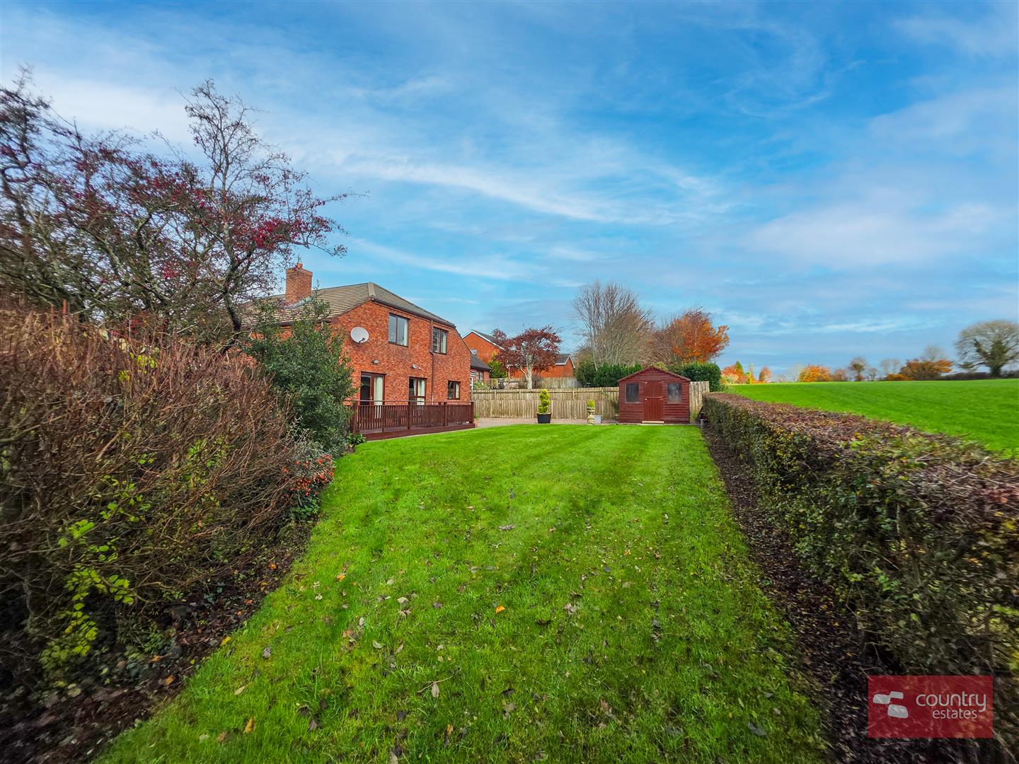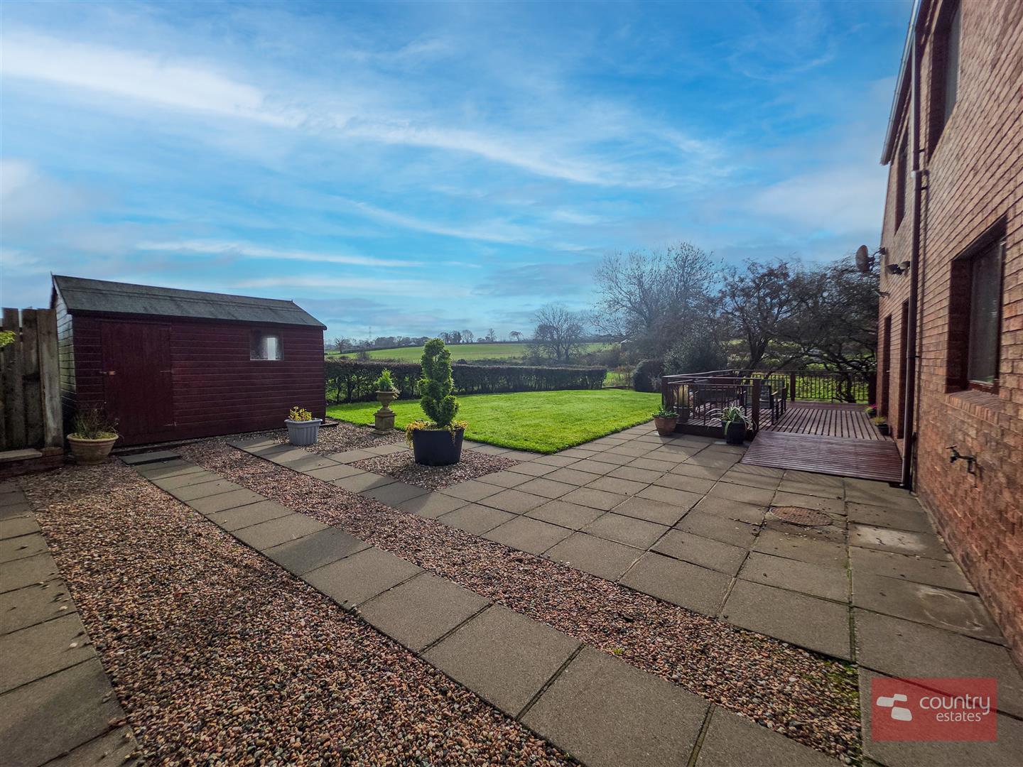 Private enclosed south-facing garden to rear with far reaching views over surrounding countryside and hills. Laid in lawn with paved patio area and walkways. Decking area, perfect for entertaining. Screened by perimeter fence and a variety of mature trees. Outside water tap and lights. Garden shed partitioned for storage and functional as a garden room.