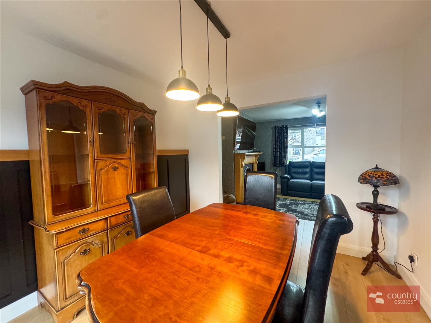 Feature painted panelled accent wall with oak trim. Sliding double glazed patio door to decked area and private enclosed garden.