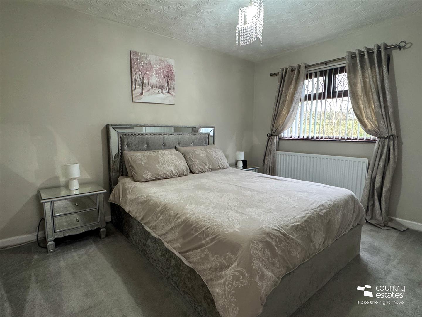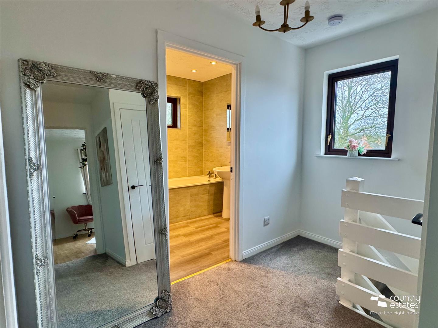 Built in wardrobe. Views over mature gardens and surrounding countryside.