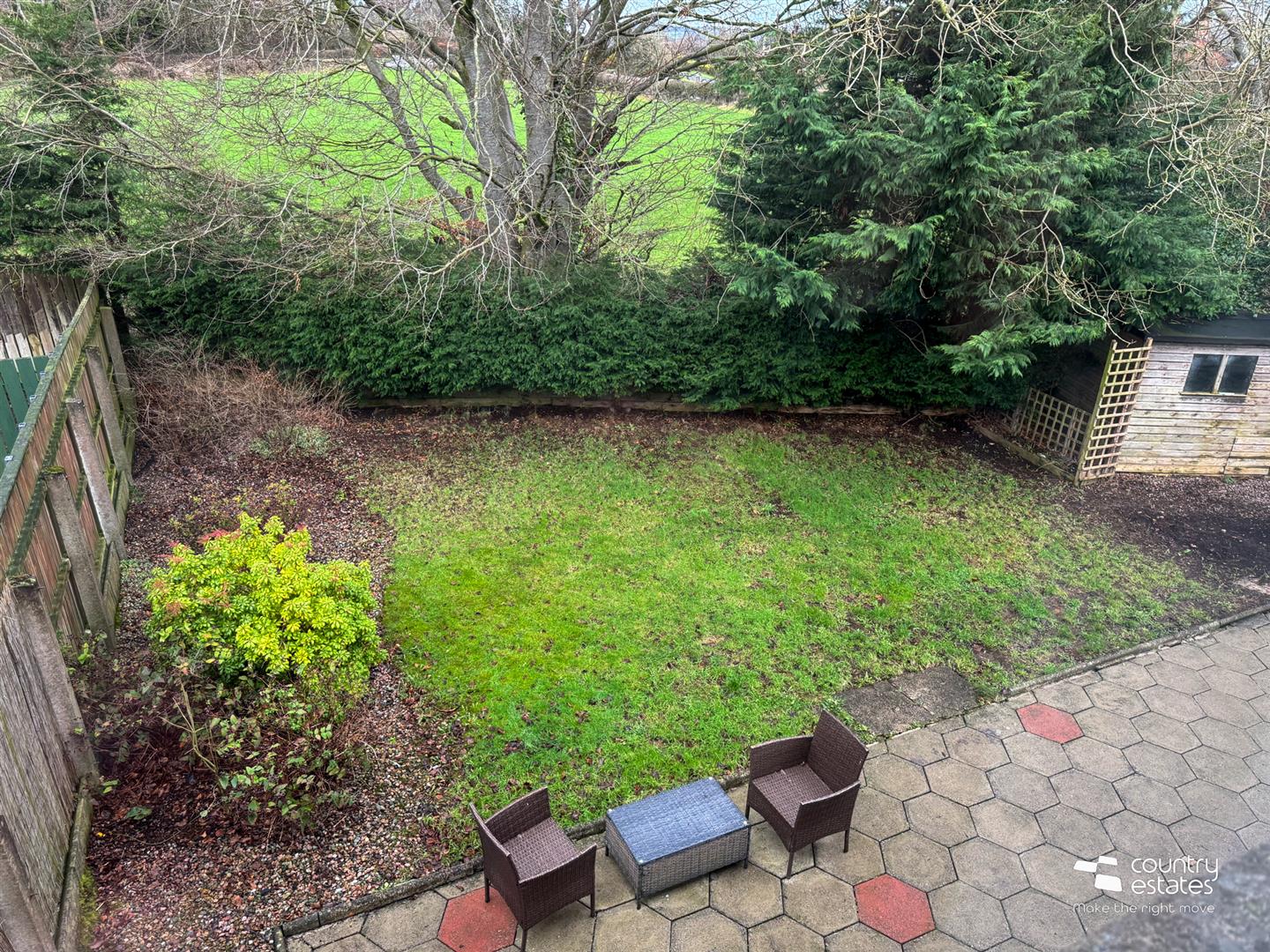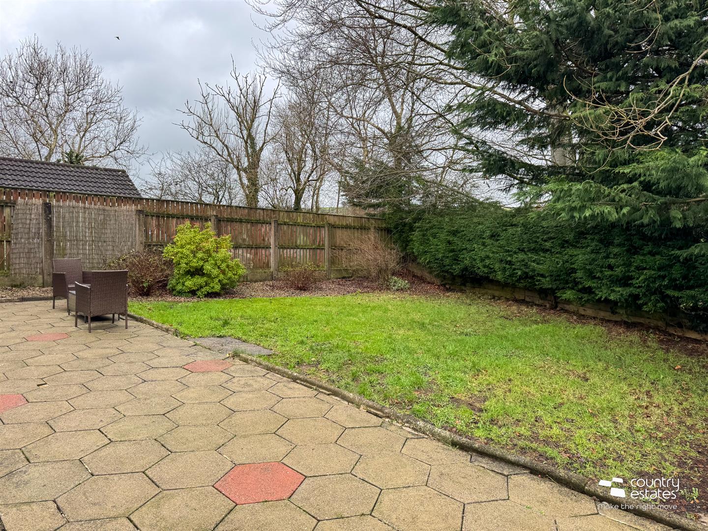 Extensive private mature garden to rear. Screened by perimeter fence and mature trees.