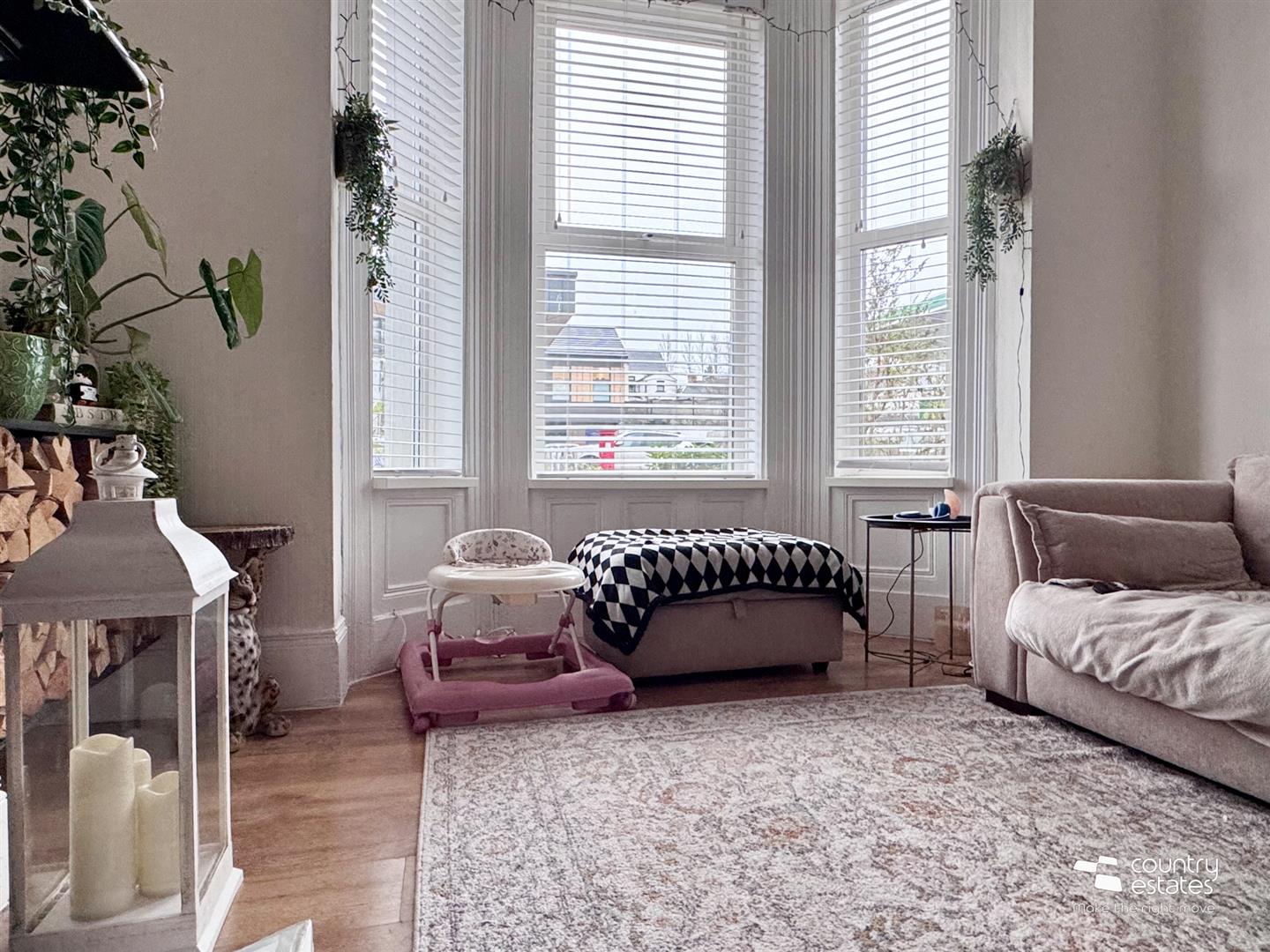 Feature bay window. Period original fireplace with tiled inset in metro brick tile. Original corncied ceiling, picture rail and ceiling rose. Quality laminate flooring.