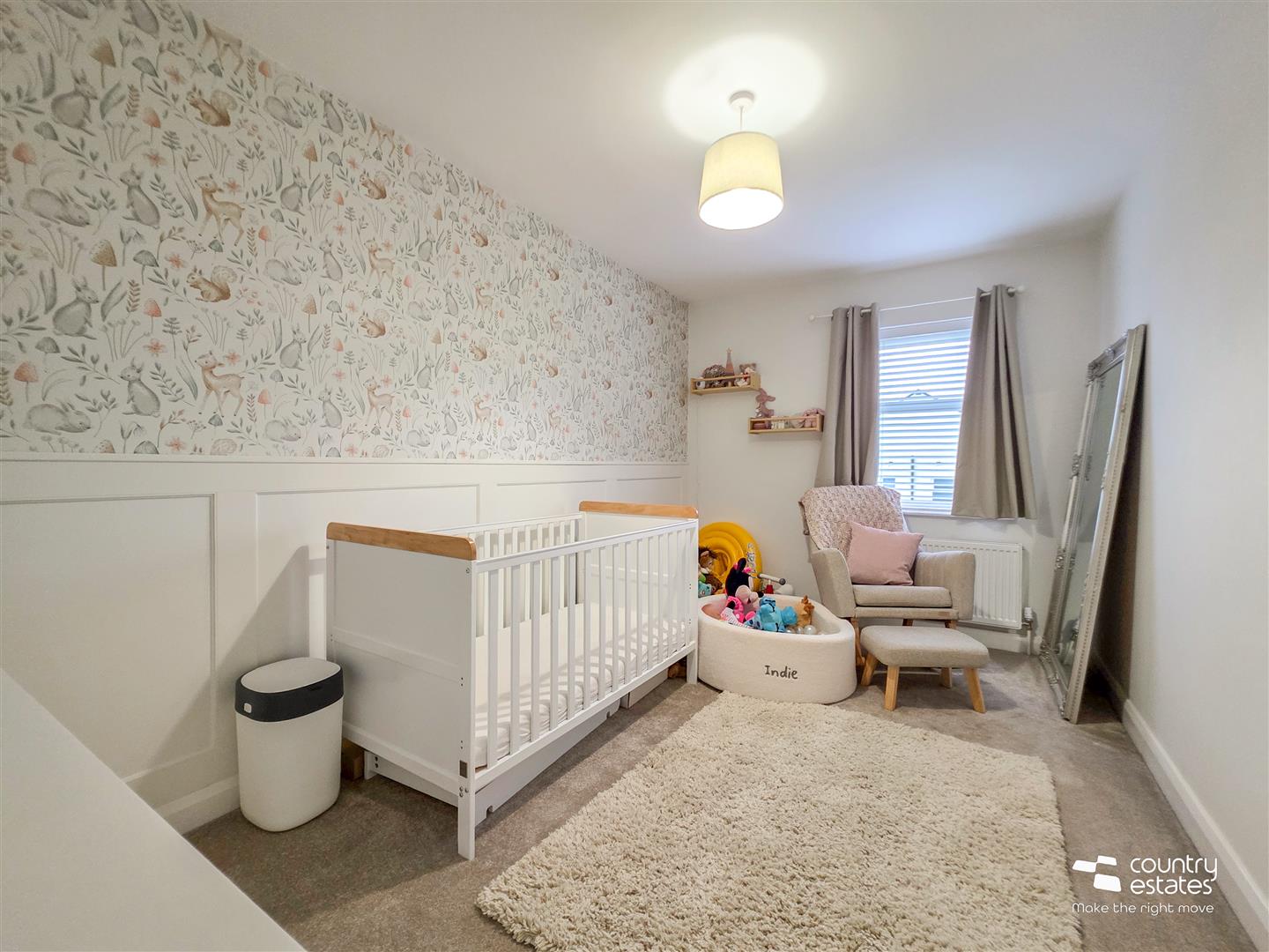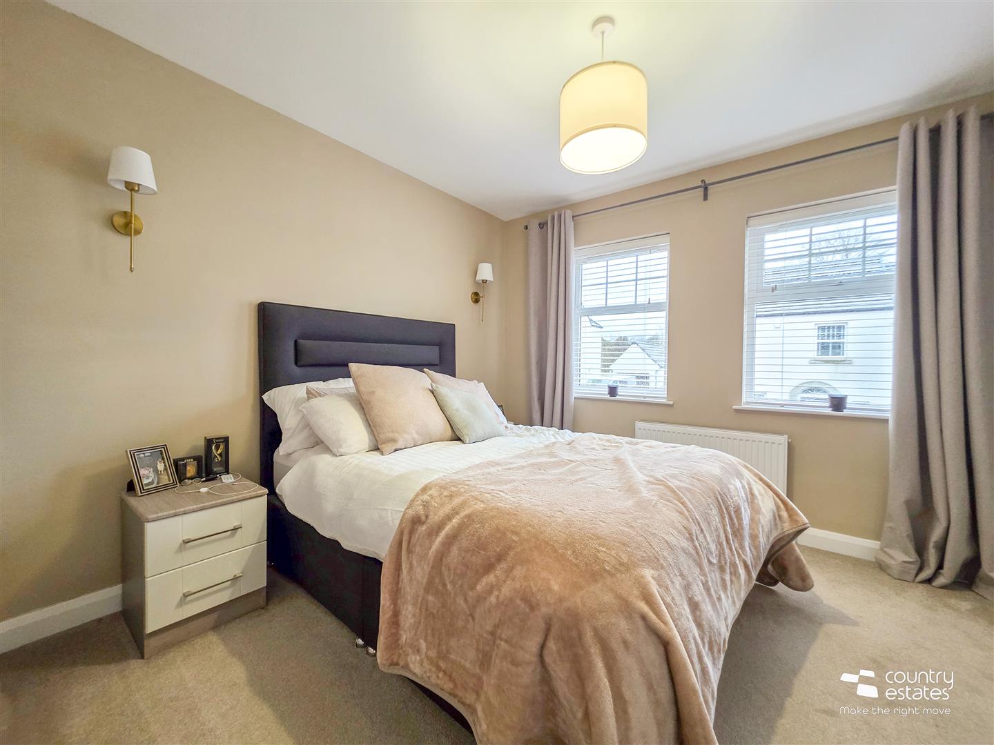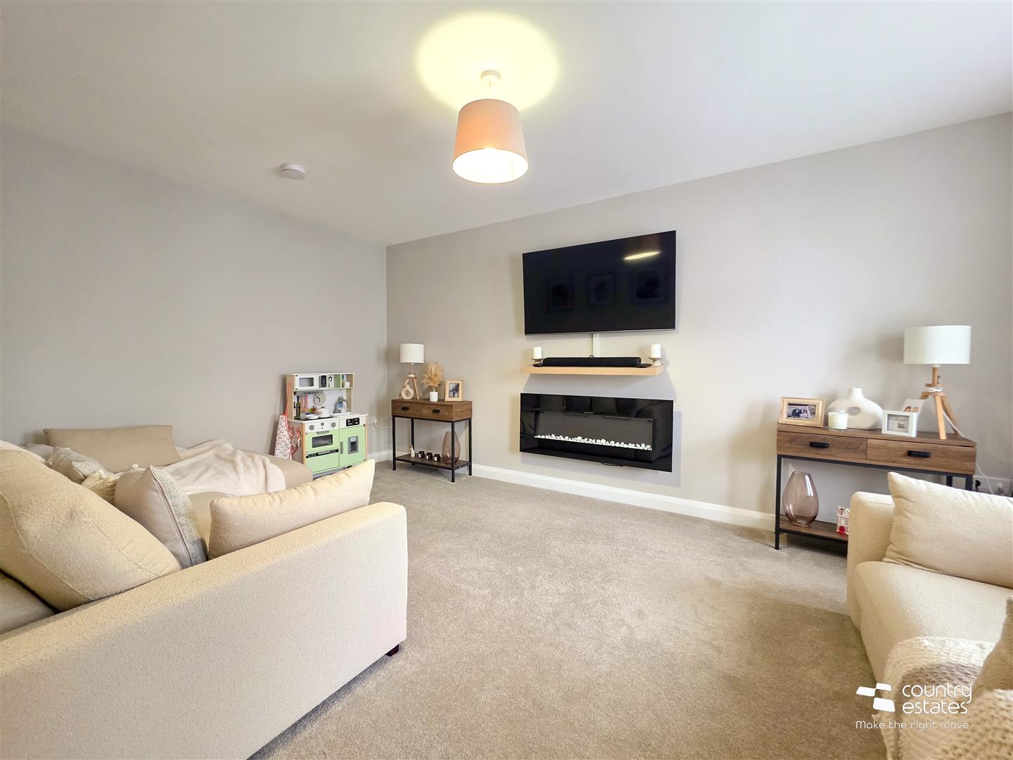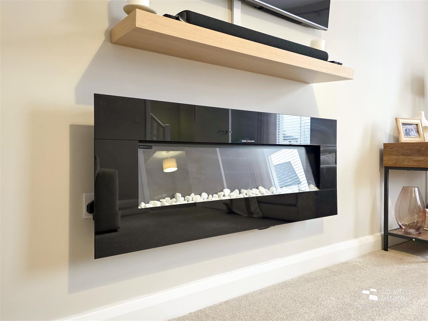 Feature wall mounted electric fire. Dual window aspect.