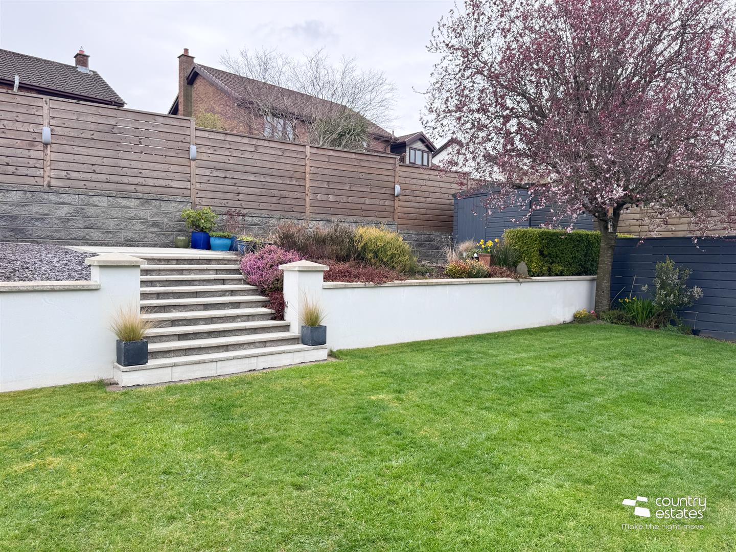 Private Professionally Landscaped Rear Garden With Raised Terrace