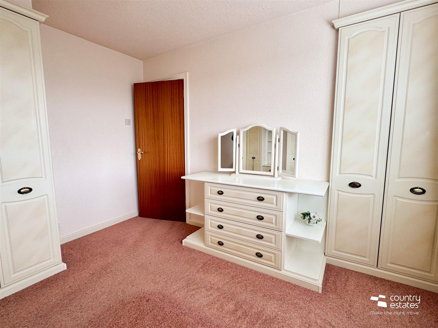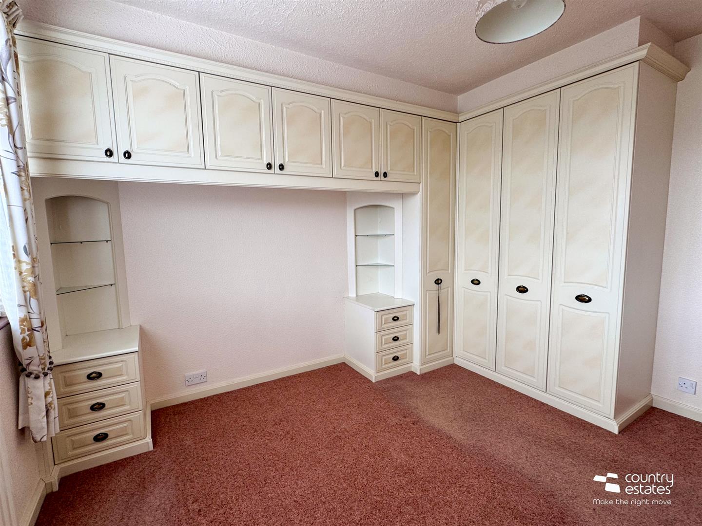 Equipped with a bespoke range of built in bedroom wardrobes with matching overhead storage and dressing table.