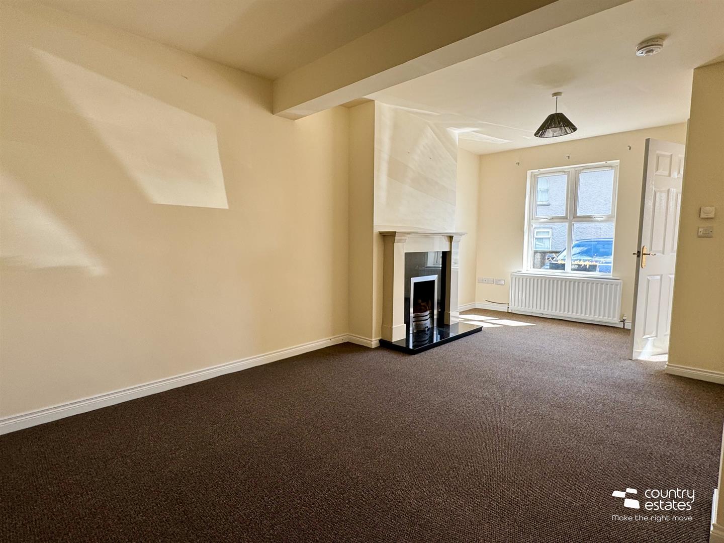 At max. Attractive modern polished granite open fireplace with contrasting surround. Dual window aspect. Large walk-in under stairs storage cupboard. Small under stairs cupboard. Hardwood double glazed window.