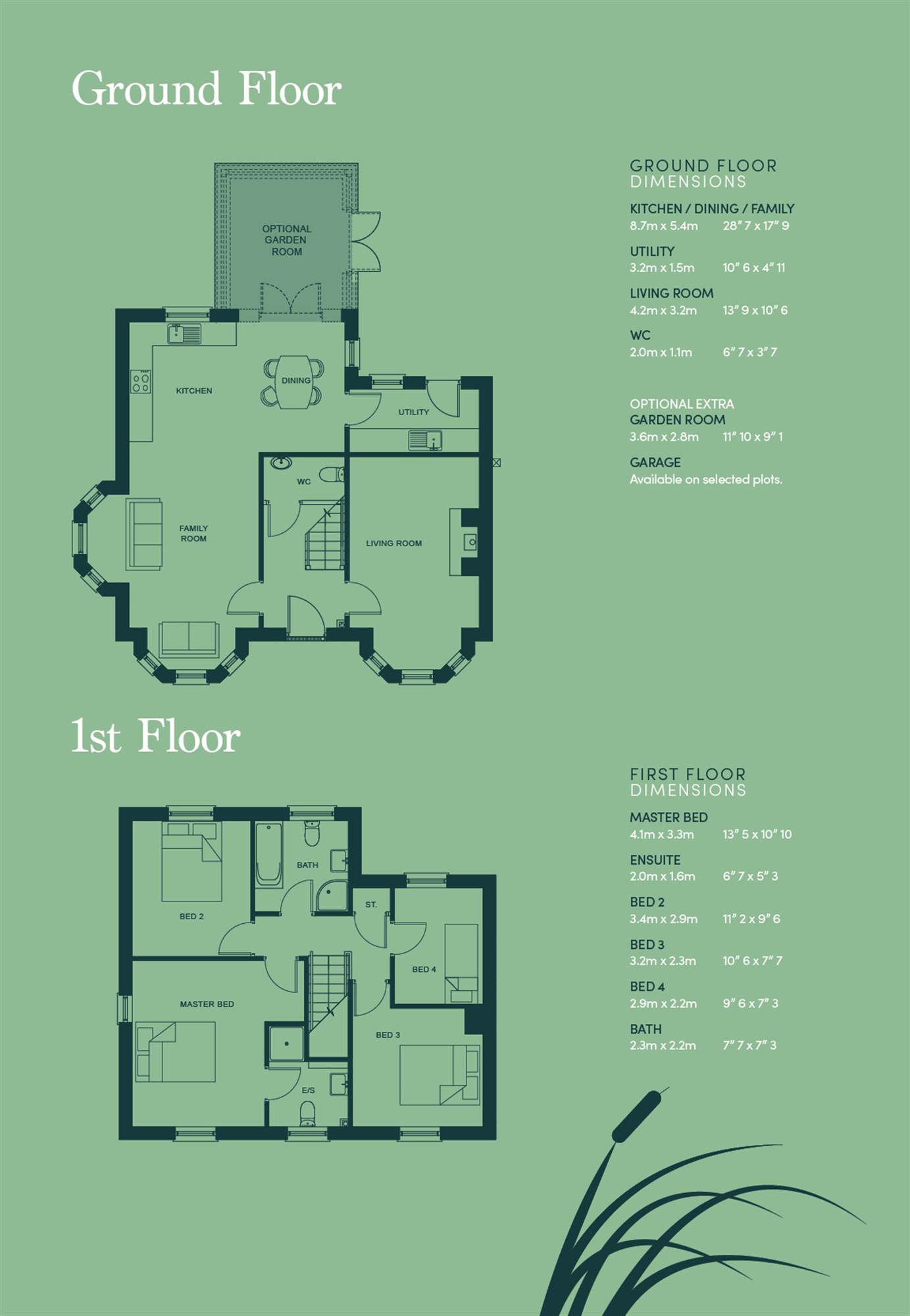 Ceramic floor tiling to kitchen/dining, utility room, hall, bathroom, en-suite and WC