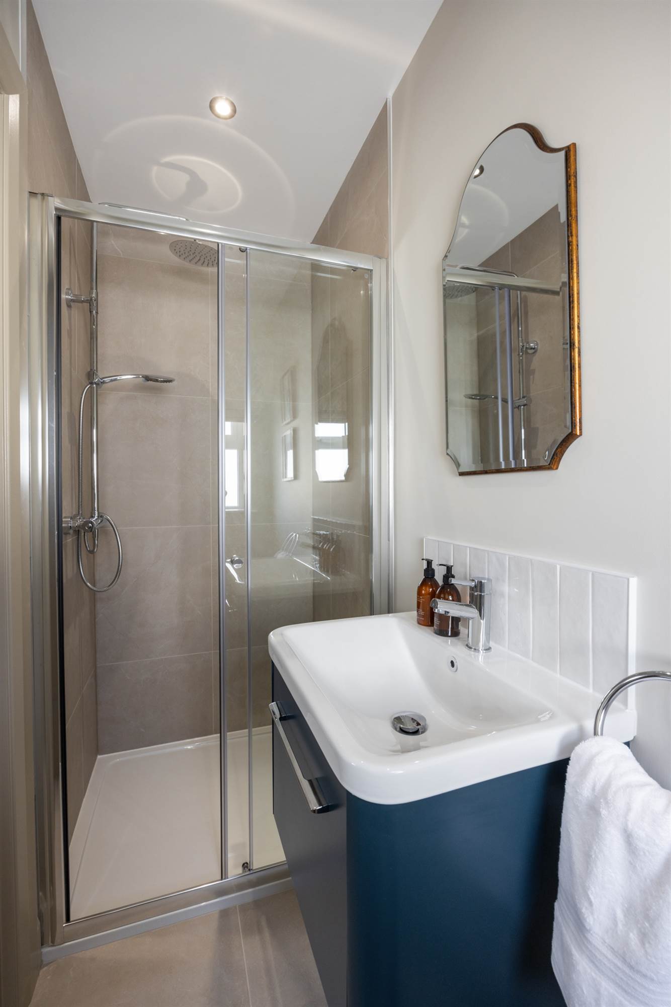 Shower bath with full shower and shower screen (except where separate shower is provided in main bathroom)