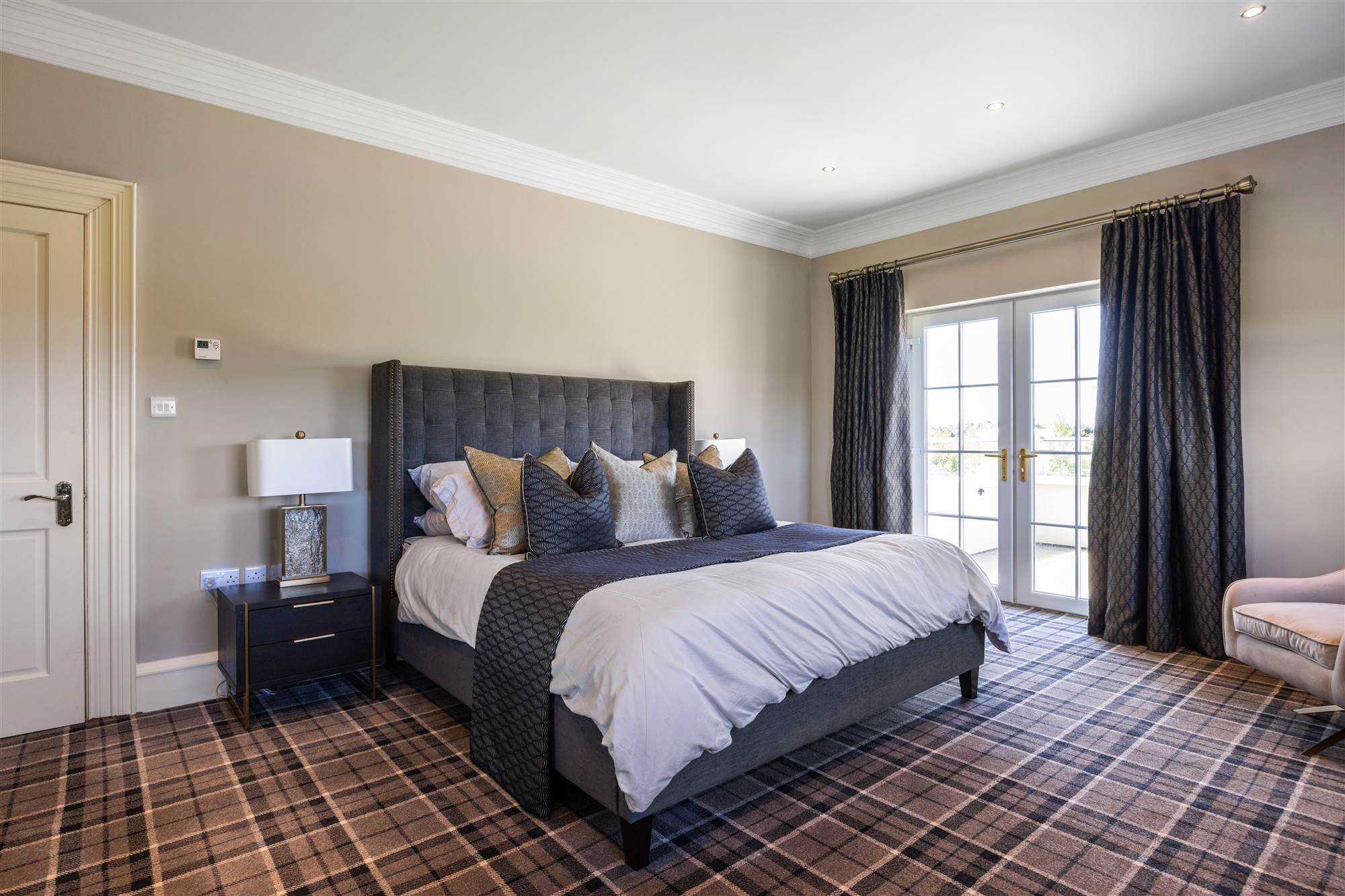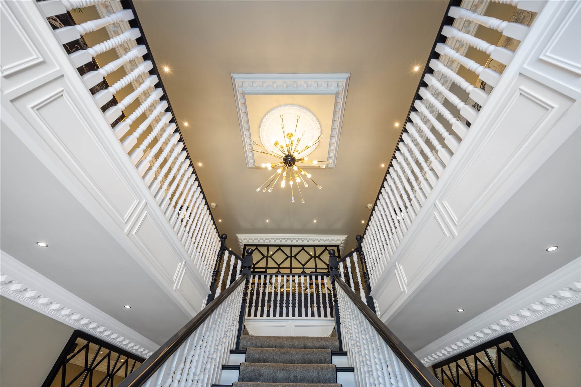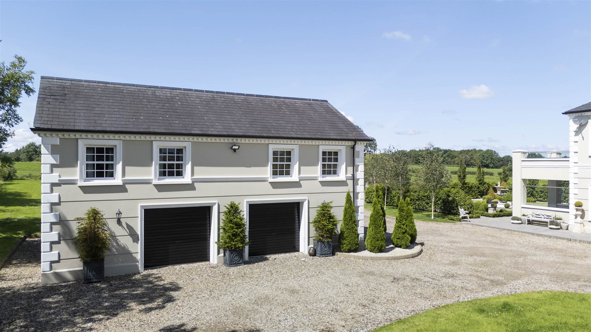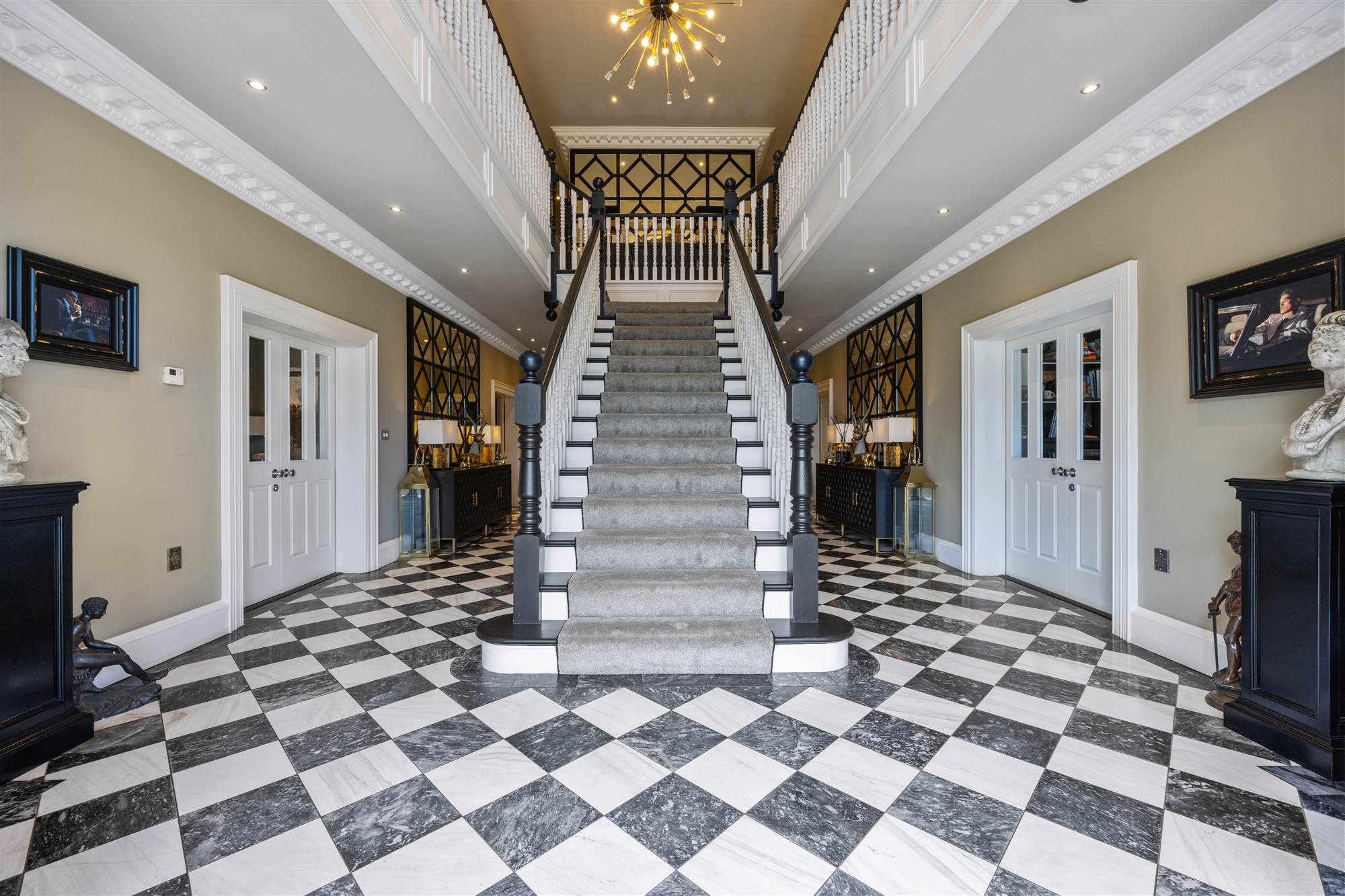 The main residence, extending to 6,500 sqft, boasts five large bedrooms, four with en suite facilities and six fabulous reception areas. The main reception hall features marble flooring and a grand staircase. The reception rooms, all with large windows, are ideal for welcoming family or entertaining friends yet provide a very comfortable feel. There is also a stunning kitchen complete with hand painted hardwood units, marble tops, centre piece island and extensive range of high end appliances.