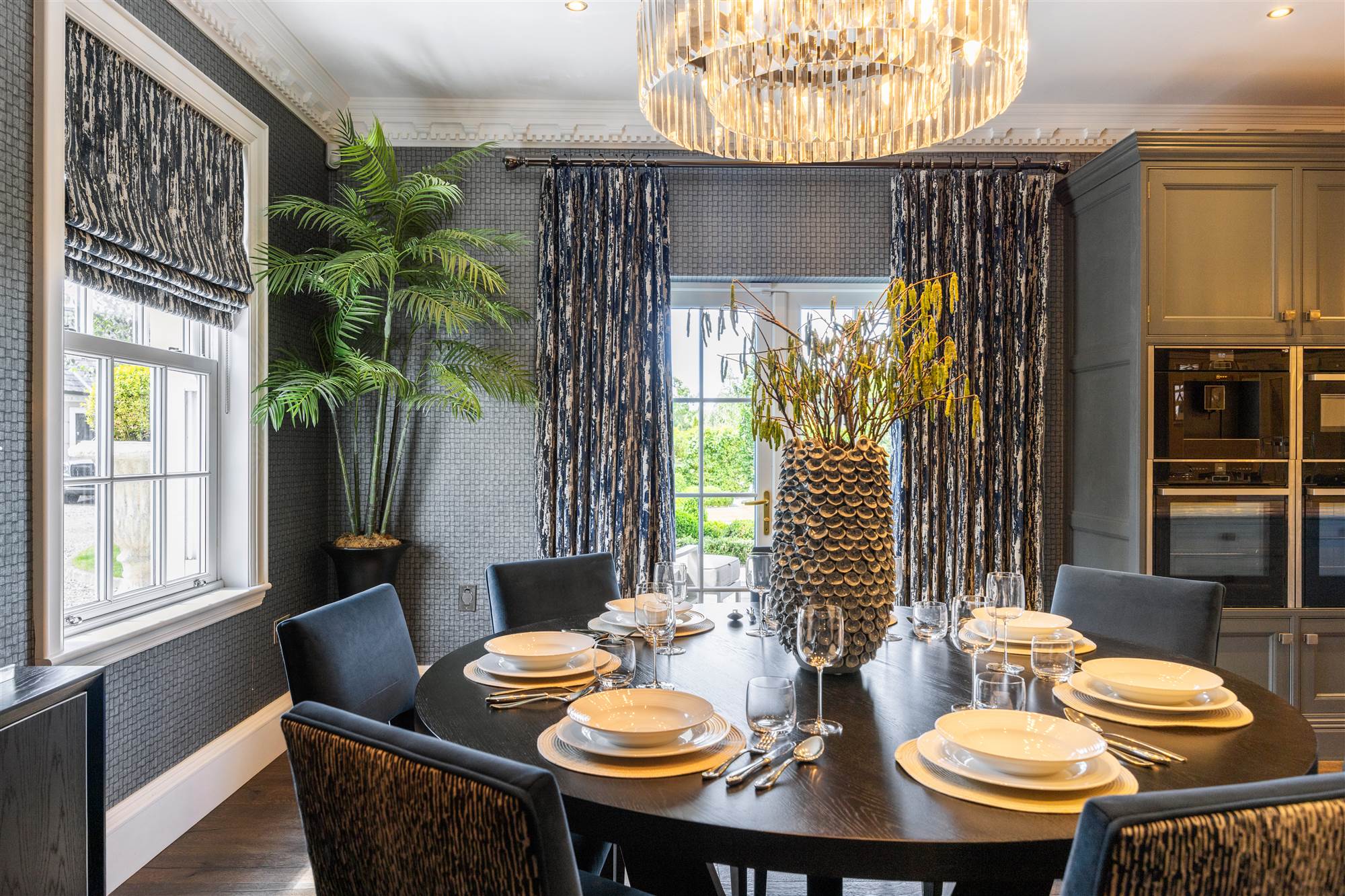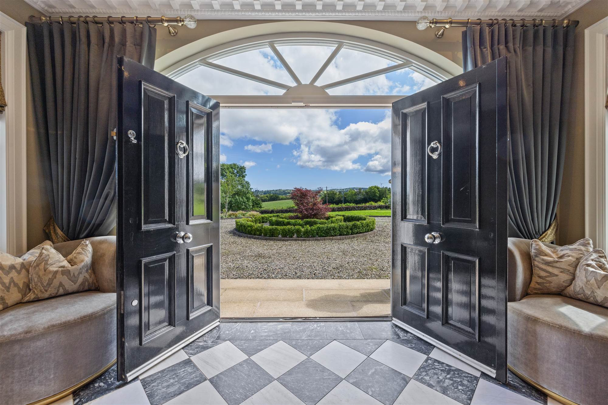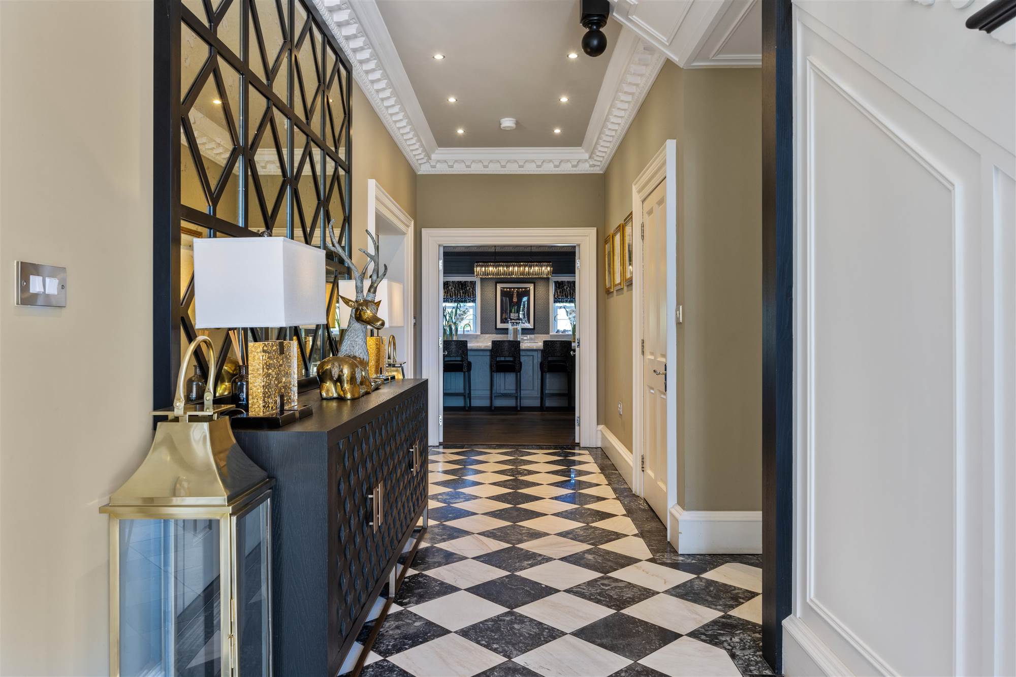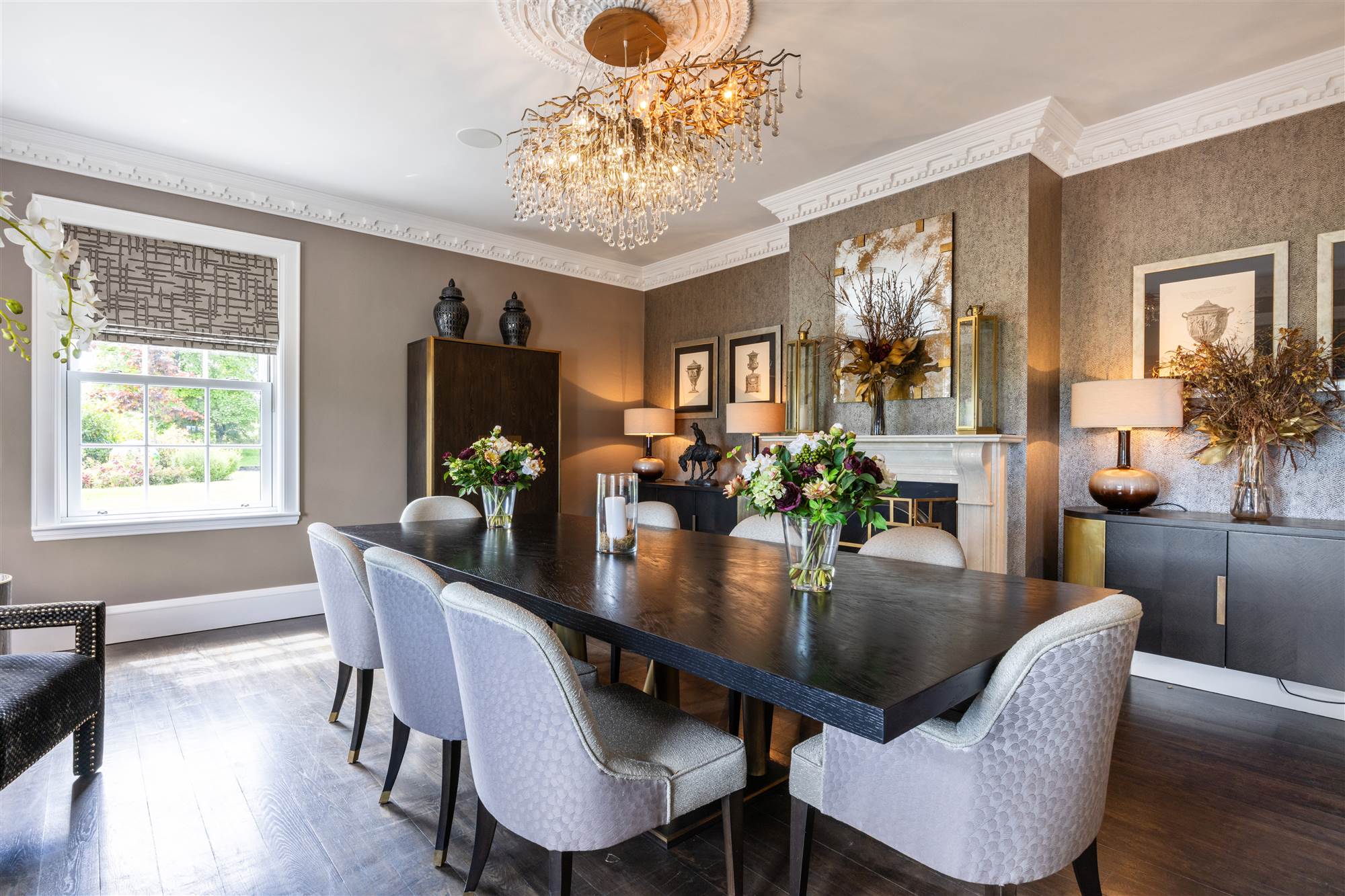 The main residence, extending to 6,500 sqft, boasts five large bedrooms, four with en suite facilities and six fabulous reception areas. The main reception hall features marble flooring and a grand staircase. The reception rooms, all with large windows, are ideal for welcoming family or entertaining friends yet provide a very comfortable feel. There is also a stunning kitchen complete with hand painted hardwood units, marble tops, centre piece island and extensive range of high end appliances.