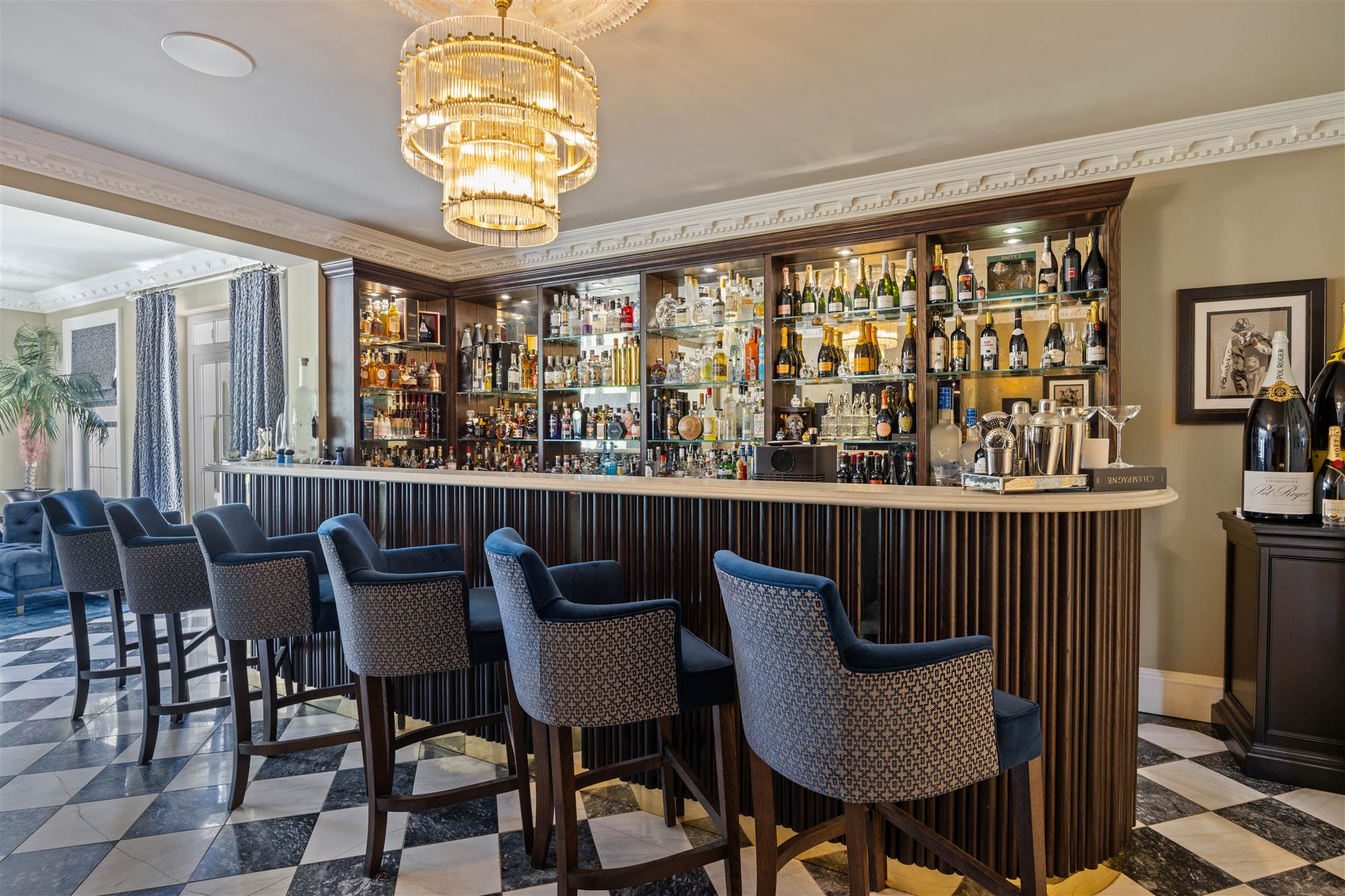 (at widest points). Fully fitted bar with extensive shelving, drinks coolers, casual bar/sitting area with stone work surfaces, cornice ceiling, ceiling rose, surround sound speakers, stone tiled floor, patio doors to rear.