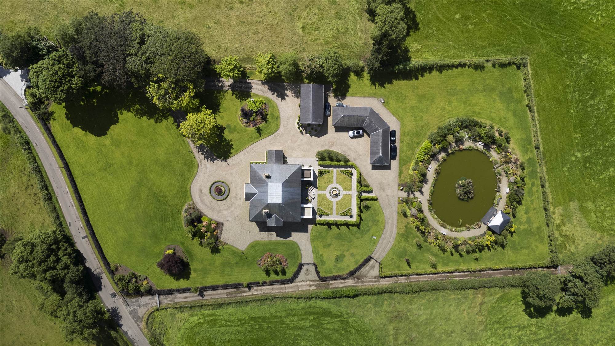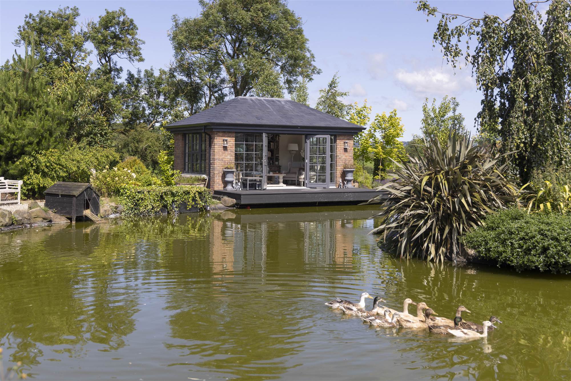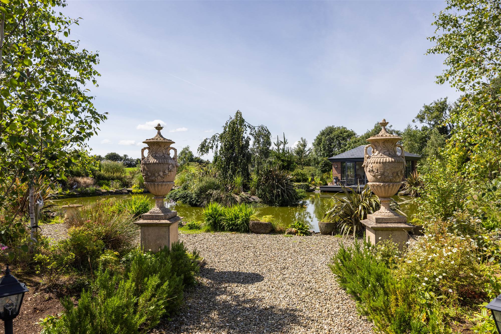Stunning, mature gardens of circa 2.8 acres surrounding the property in extensive lawns, landscaped beds in specimen trees, beds with shrubs and bushes, stone paved sitting areas, covered stone paved veranda. All complimented by the stunning views and external lighting and car charging point to the rear. Stunning lake complex to the rear with stone rockery, well stocked beds in shrubs, trees, bushes, street lighting and composite decking for those sunnier evenings allowing access to the duck house in the centre of the lake. There is a delightful stone path around the lake with seating to enjoy the tranquility of the gentle water sounds.