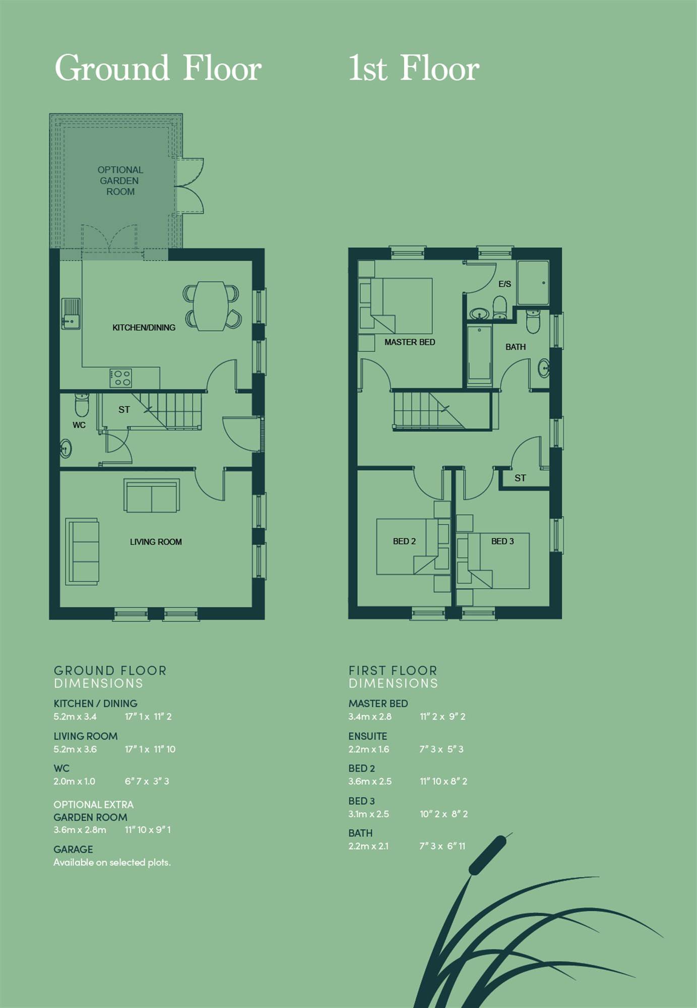 Multi fuel stove in detached houses / Electric focal feature fire in semi-detached houses