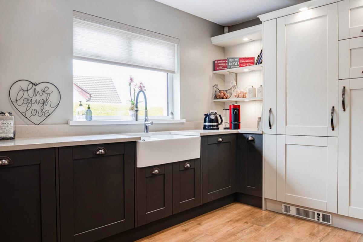 This is a beautifully presented detached chalet style bungalow situated in a much sought after location and within easy access of Ballyclare Town Centre. Local amenities as well as both primary and higher education schools are close by. Internally this property is presented to the highest level of specification with good size main lounge with feature multi fuel stove, luxury fitted kitchen with dining area and open to sun room. Three well appointed bedrooms to ground floor level - master bedroom with ensuite shower room as well as a lavish white four piece family bathroom to round out the ground floor. On the first floor is an additional bedroom plus wash room along with a large landing area which is currently used as games room. Additional benefits include an attached garage as well as manicured gardens to front and rear with abundance of mature shrubs and plants. This is an exceptional home and one that is sure to attract considerable interest and as such we would strongly recommend an early appointment to view.