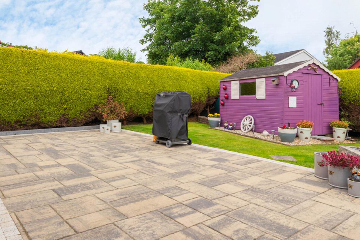 Extensive mature corner site with landscaped gardens laid out in lawn and with abundance of shrubs, plants and hedging, raised flower beds, feature sun deck, paved patio area, outside water tap, outside lighting, oil storage tank, brick pavior driveway with good car parking space