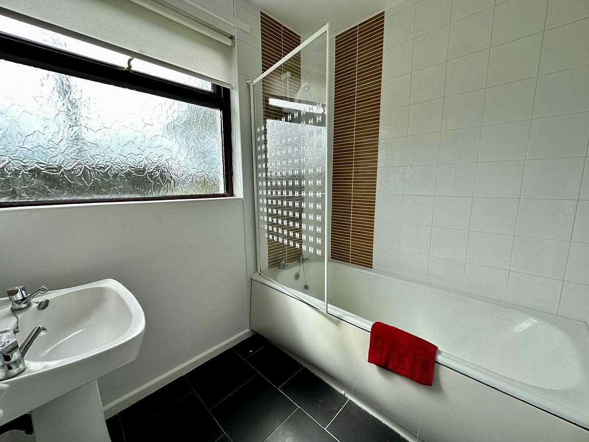 Ground floor bathroom with electric shower over bath