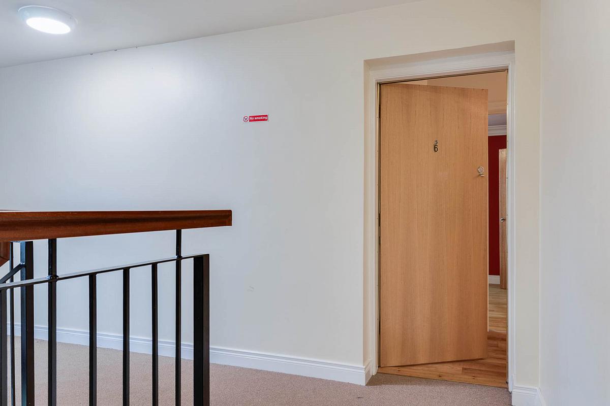 Communal door to communal hallway leading to second floor apartment. Hardwood front door to:-