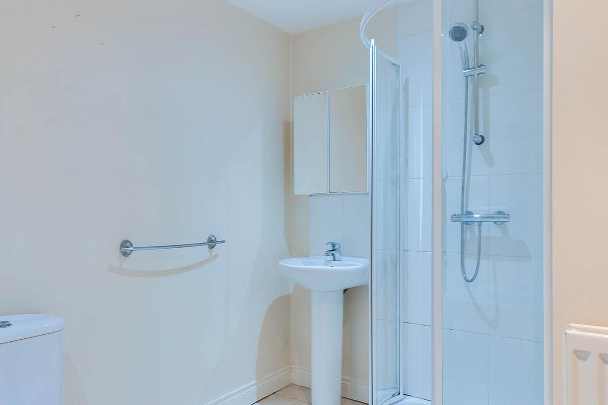 White four piece suite comprising panelled bath, pedestal wash hand basin, low flush wc and separate shower enclosure.