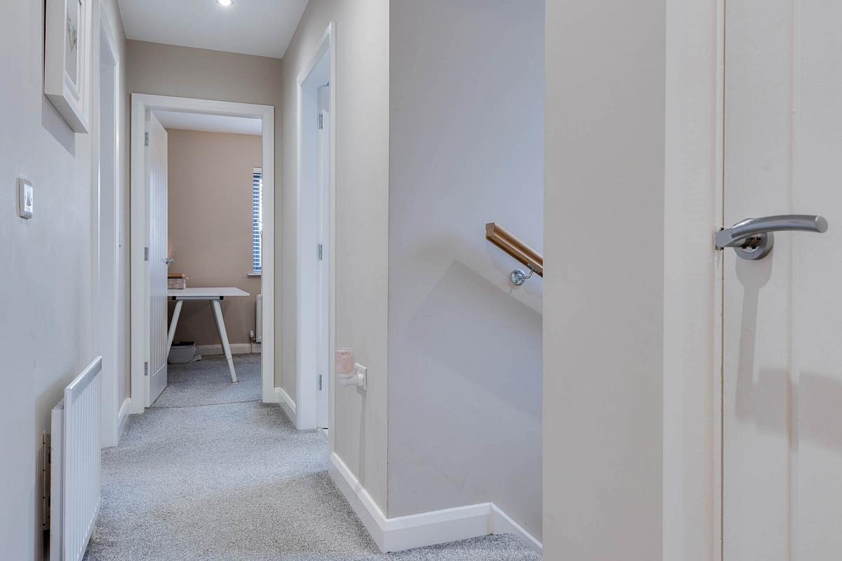 From Main Reception Hallway - Staircase to first floor landing with built in storage cupboard and access to roofspace.