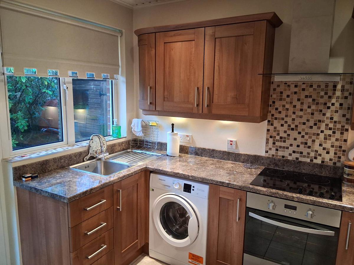 This property offers a bright lounge with open fire through to dining area and modern fitted kitchen.