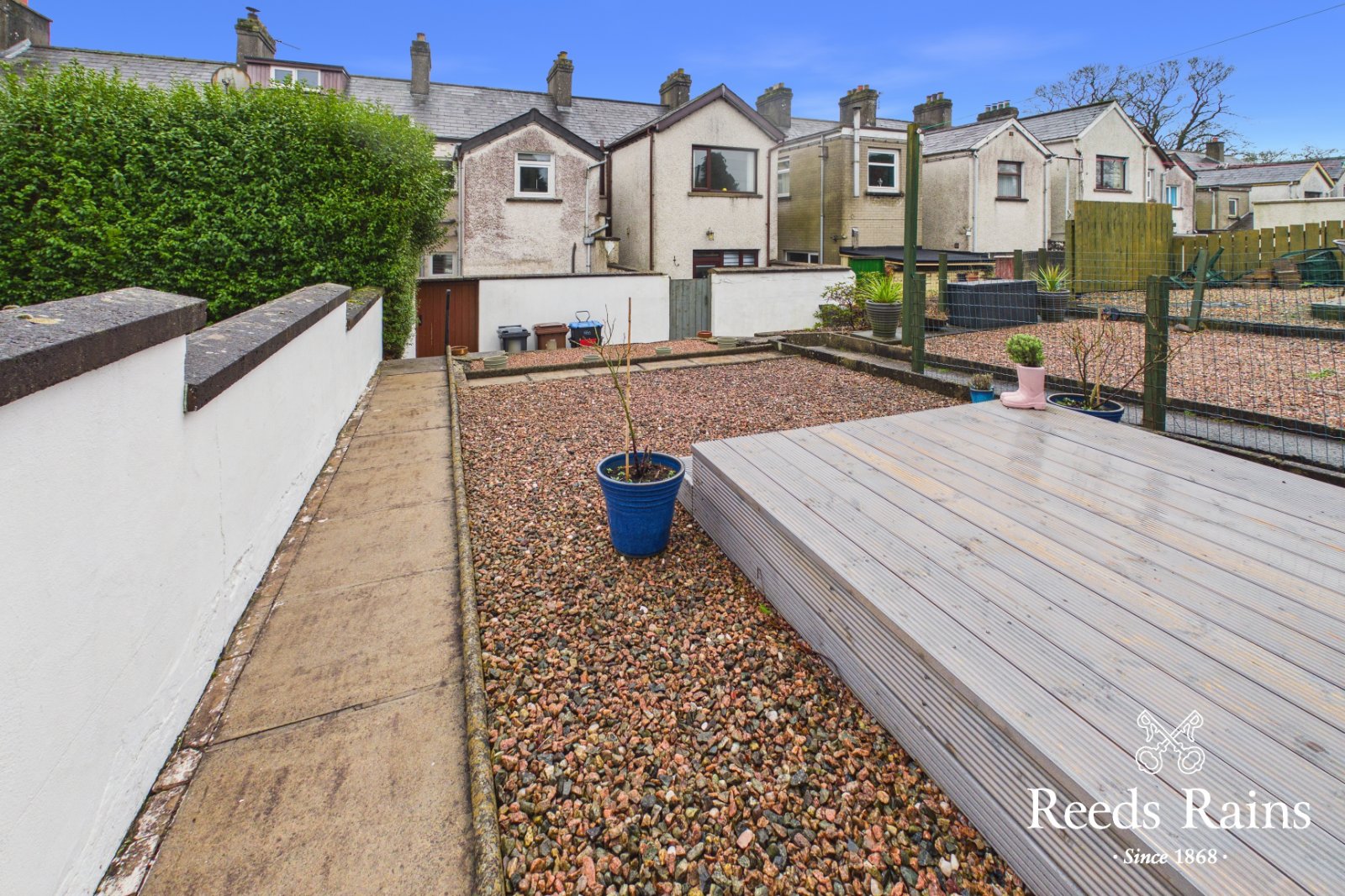 Tiered garden to the rear with generous garden with decking and covered storage to the rear. Garden shed also.