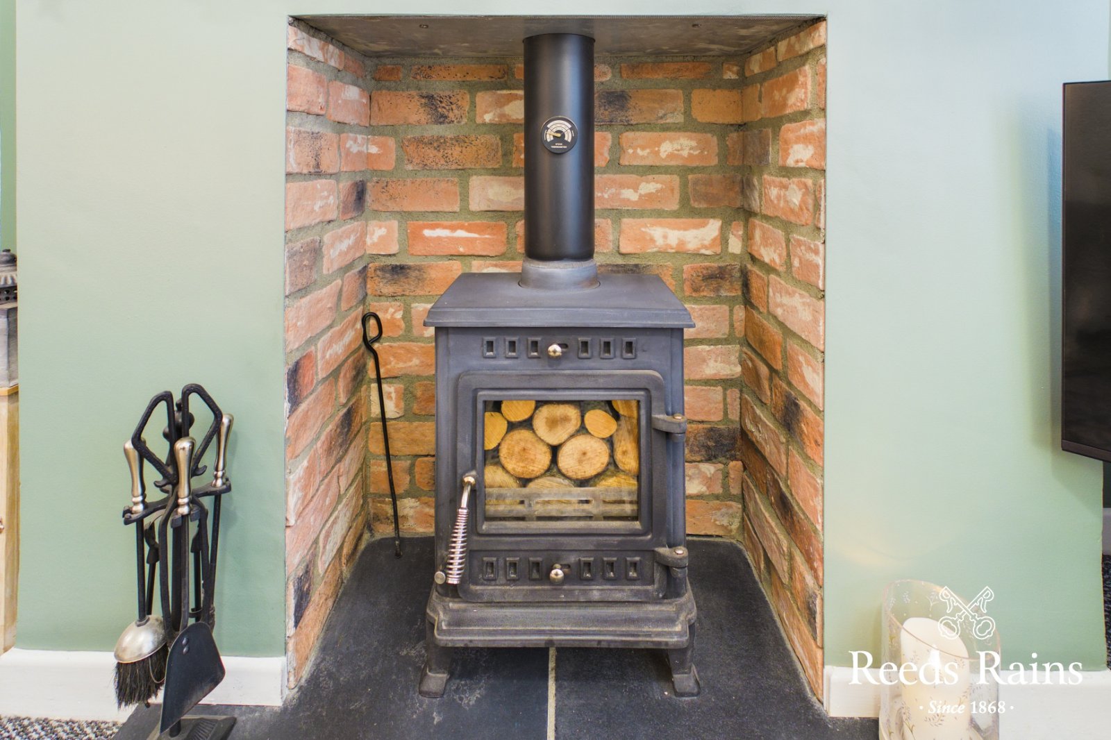 Naturally bright and spacious lounge complete with brick ingelnook fireplace with multi fuel stove. Open plan casual dining space.