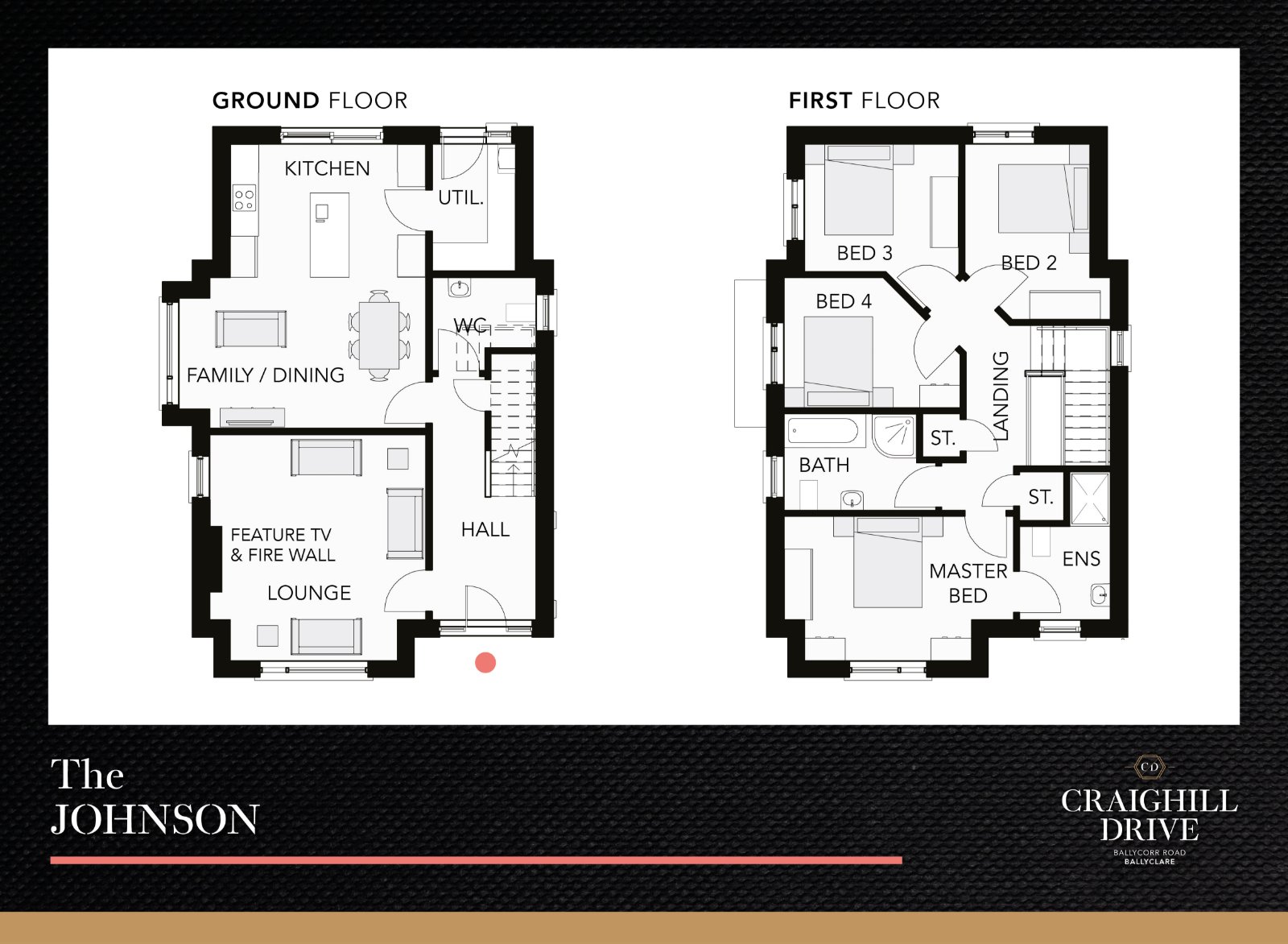 Range of Stunning Detached & Semi Detached Properties Close to everything, far from ordinary. Surrounded by picturesque landscapes and breath-taking scenery, Ballyclare provides the perfect opportunity to experience the tranquillity of rural living, all the while maintaining the status of a convenient and accessible location. What's more, Ballyclare is also home to a host of all-important amenities. From the excellent facilities at the Sixmile Leisure Centre and Water Park, including a swimming pool, lazy river, gym, athletic tracks and soft play area, to the multitude of cafés, convenience stores, local boutiques and schools, residents of Craighill Drive can easily access everything they need within minutes. With accessible links from the M2 motorway and A57 road stretching to Antrim, Belfast City Centre and beyond, commuting has never been easier for the modern homeowner. Something for everyone. Nestled just off the Ballycorr Road, Craighill Drive showcases an outstanding collection of stunning homes. With striking exteriors and spacious interiors, featuring high quality fixtures and fittings throughout, homeowners are guaranteed a property which allows for modern family living in an unbeatable location. Carefully designed and built with your needs in mind, the homes at Craighill Drive truly provide the opportunity to create lasting memories with the entire family. With these properties not only boasting a contemporary and stylish finish, but also providing practicality and lending themselves to easy maintenance, it goes without saying that no aspect has been overlooked in the quest to ensure a remarkable home in which to be proud of.