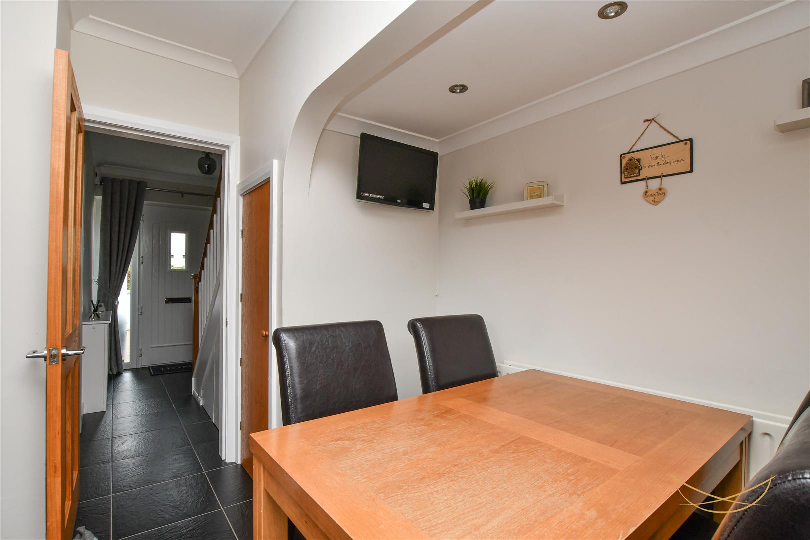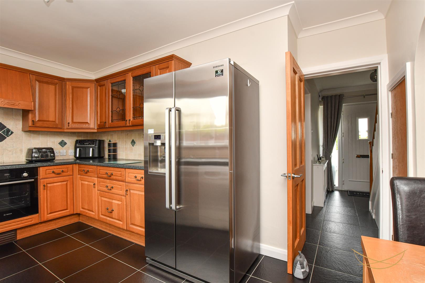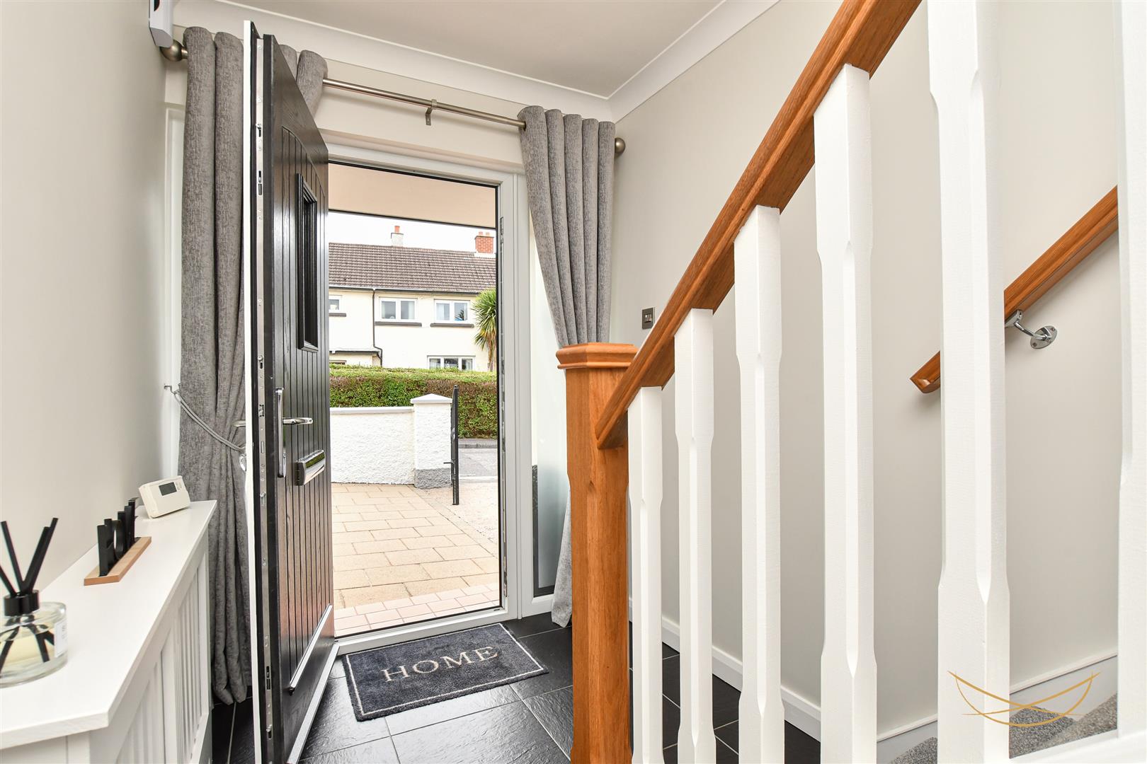 Composite external door with glazed insets and side panels. Tiled flooring. Cornice ceilings. Access to under stairs storage.