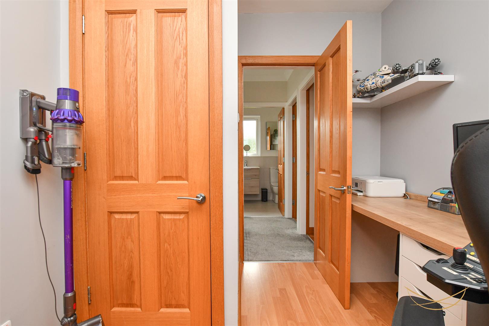 Wood effect laminate flooring. Range of built-in starplan wardrobes
