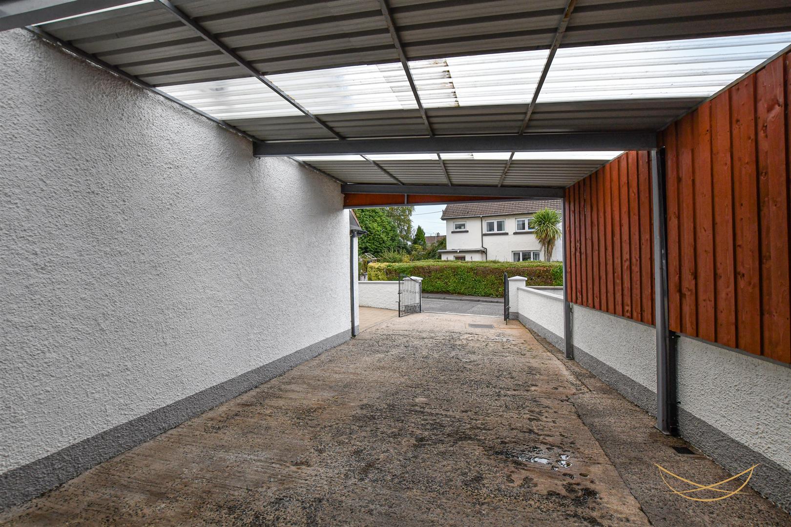 Off road parking for multiple vehicles finished in concrete. Patio area bordered by plants and shrubs. Fully sheltered car port. Detached garage. Fully enclosed rear garden with patio area bordered with plants and shrubs, surrounding wooden privacy fence.