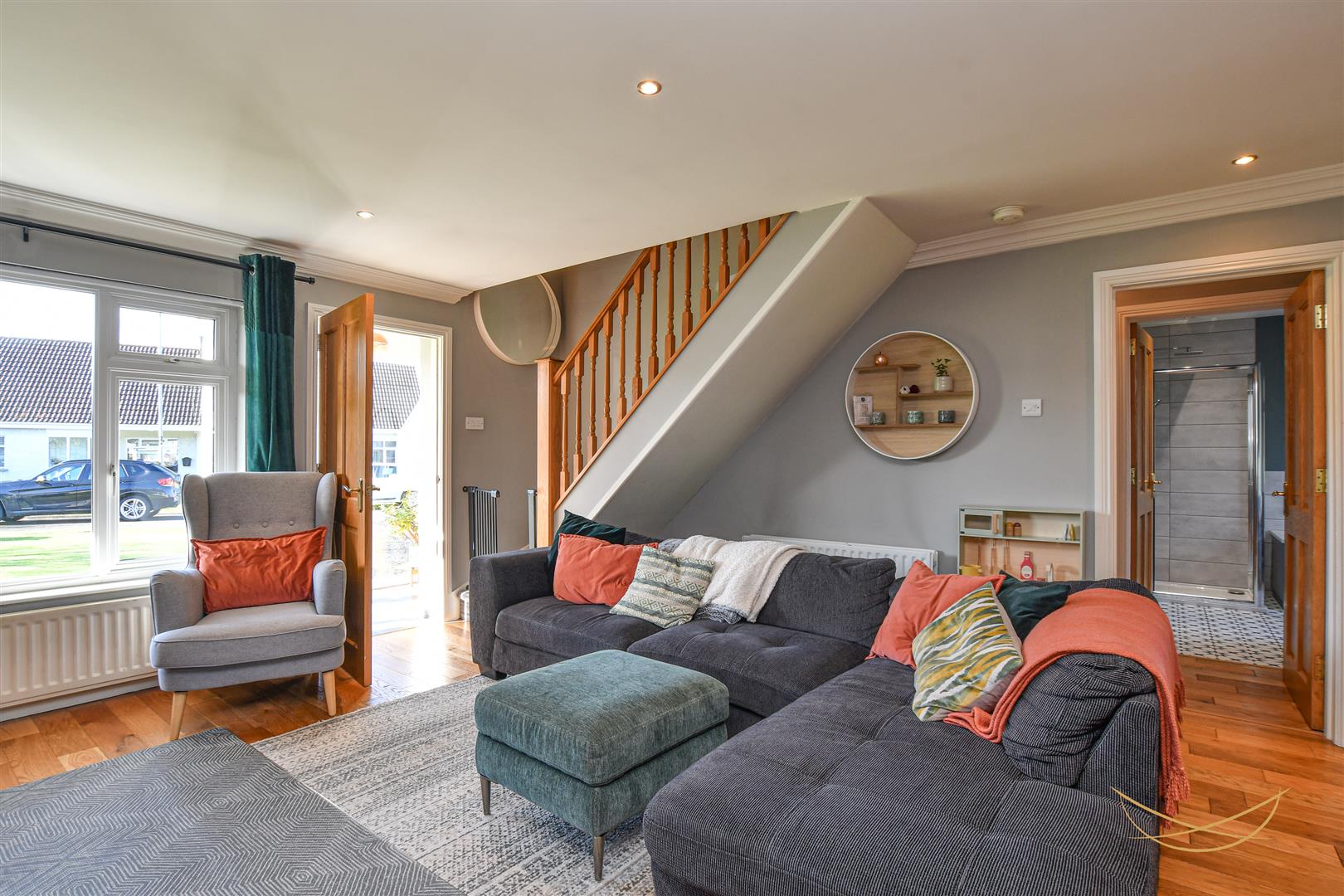 Feature multi fuel burning stove. Tiled hearth. Solid wood flooring. Cornice ceiling. Recessed spotlights.