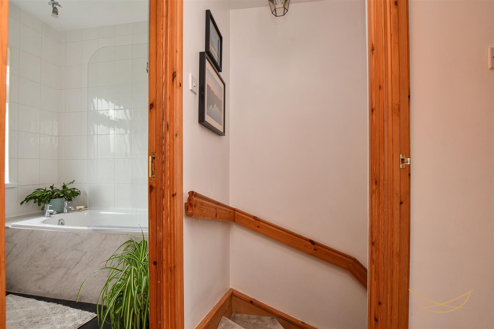 uPVC front door with glazed feature inset. Laminate wood effect flooring.