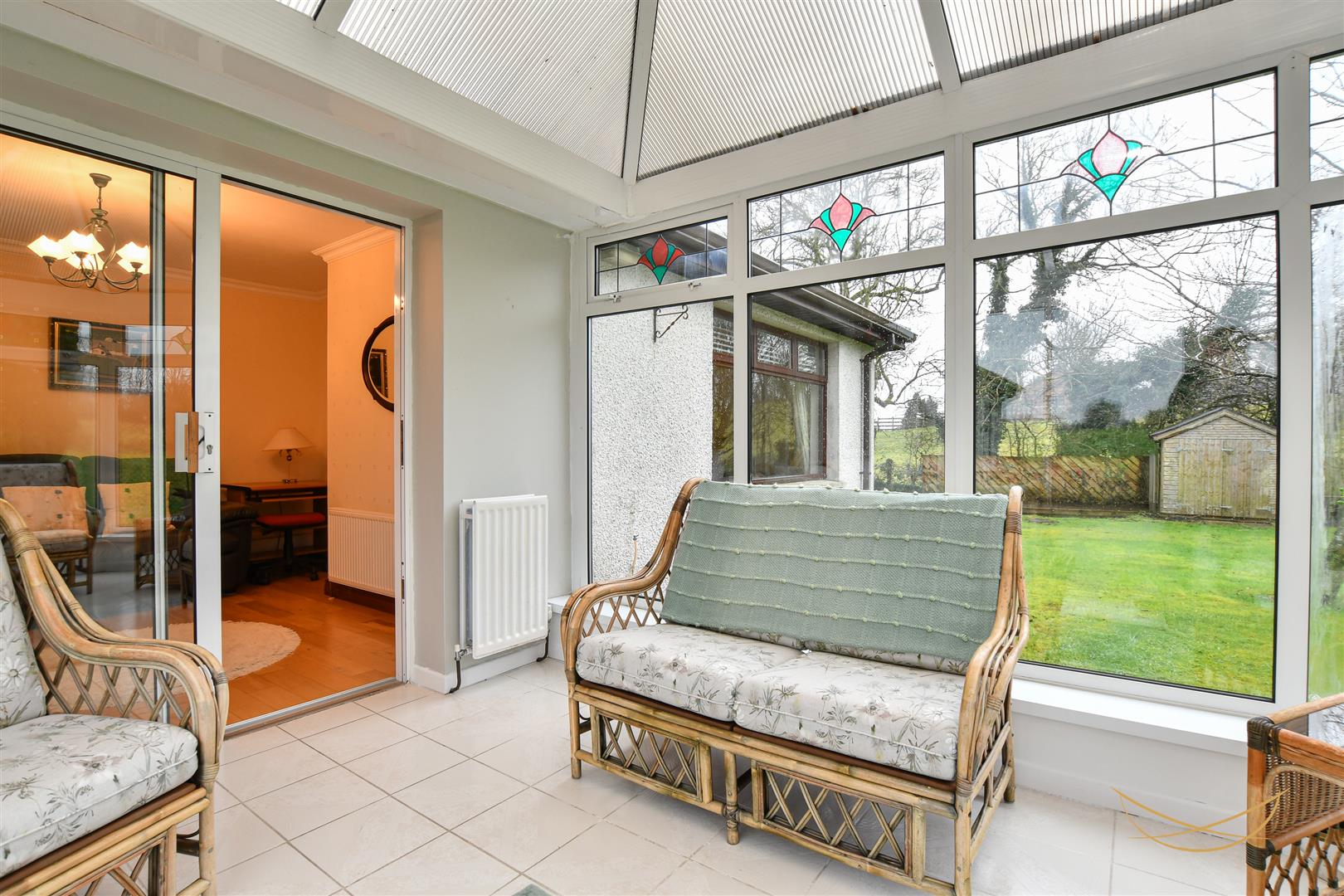 Tiled flooring. Sliding patio doors to rear garden.