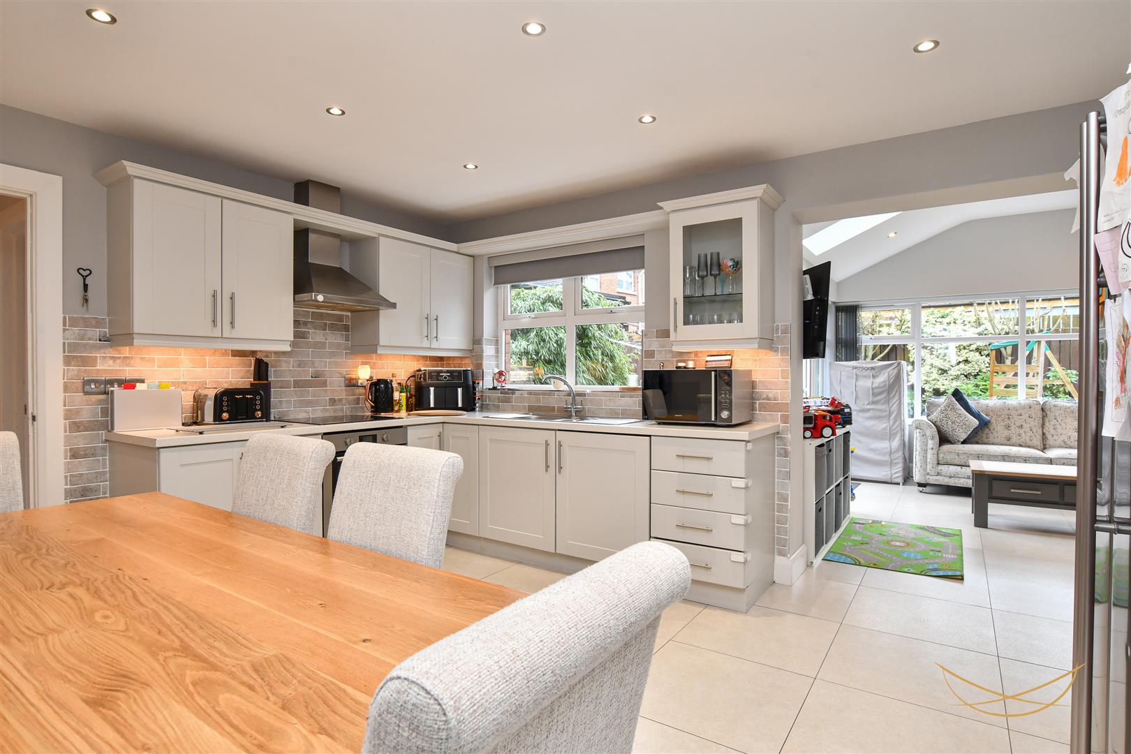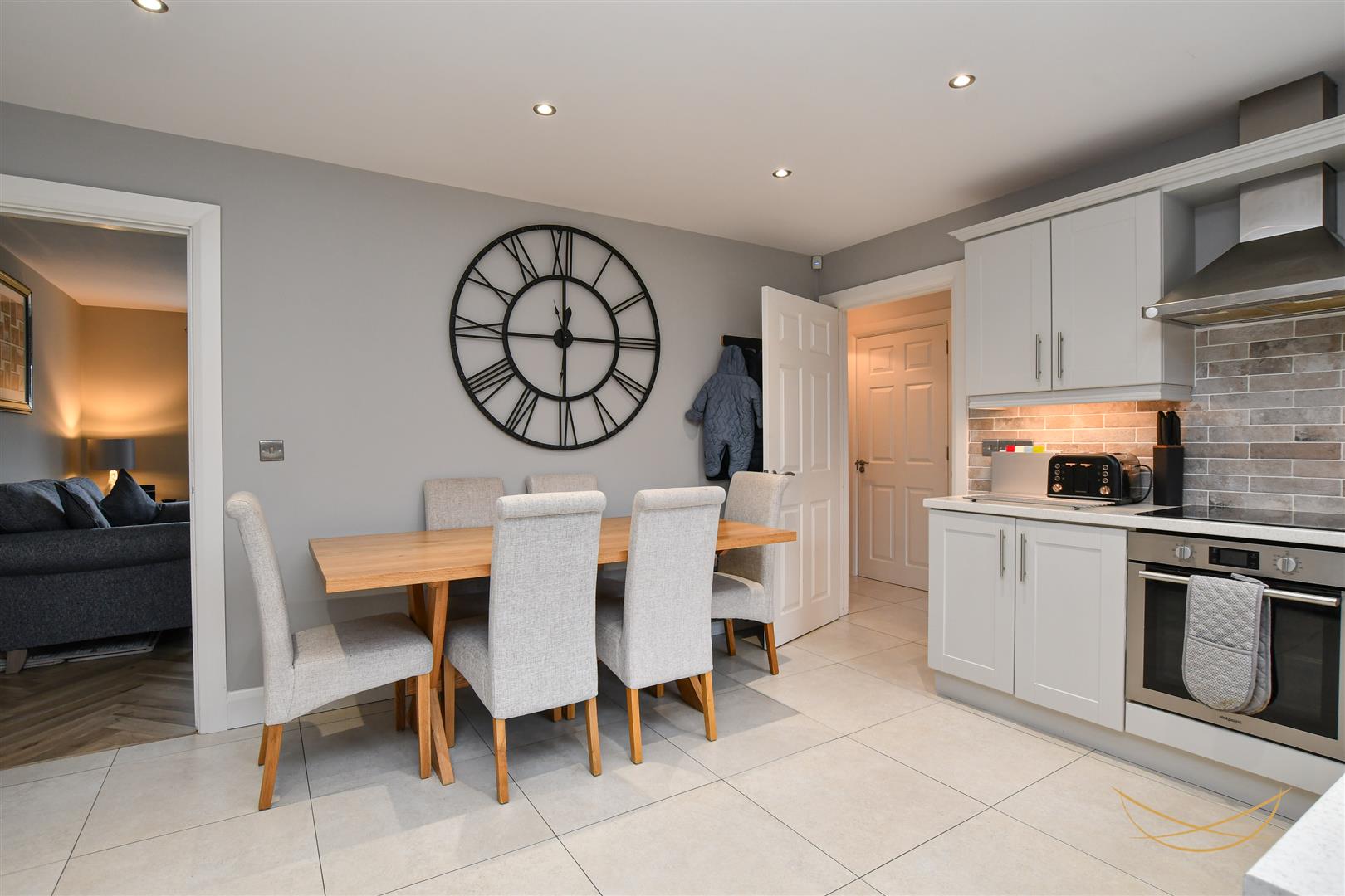 This exceptional home offers the perfect blend of space, style and comfort for modern family living. Inside, a bright and spacious lounge provides a welcoming setting to relax and unwind, while the charming shaker-style kitchen with informal dining area creates a wonderful hub for everyday life and entertaining alike. A delightful sunroom overlooks the garden, offering additional versatile living space filled with natural light. Practicality is well catered for with a separate utility room to keep household tasks neatly tucked away.