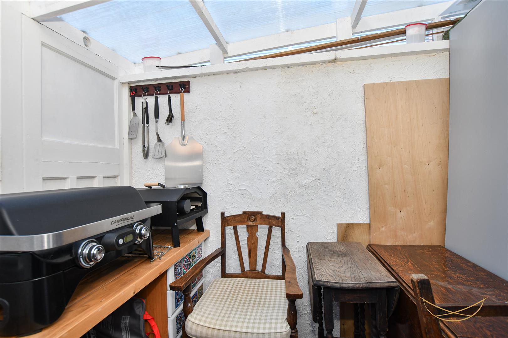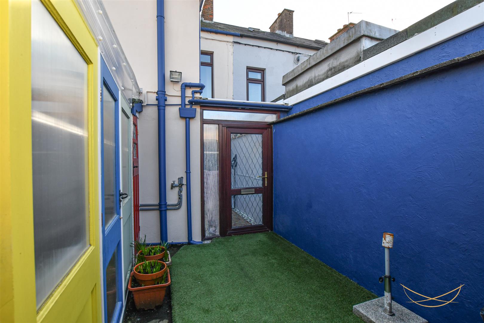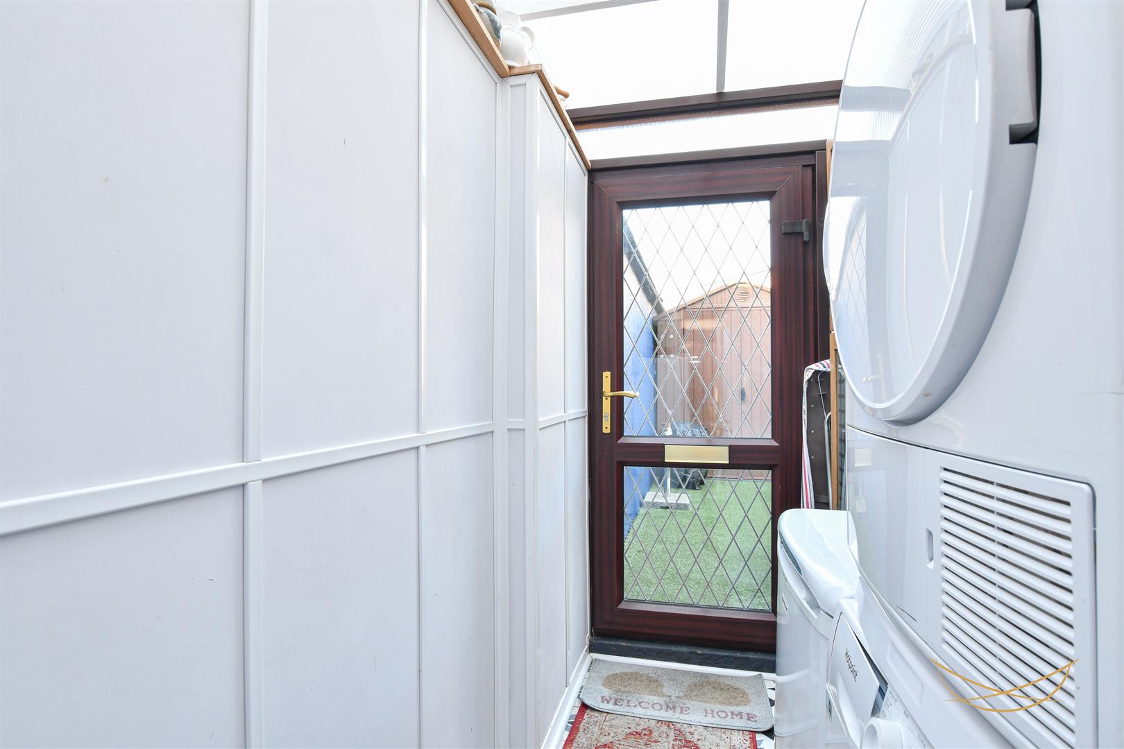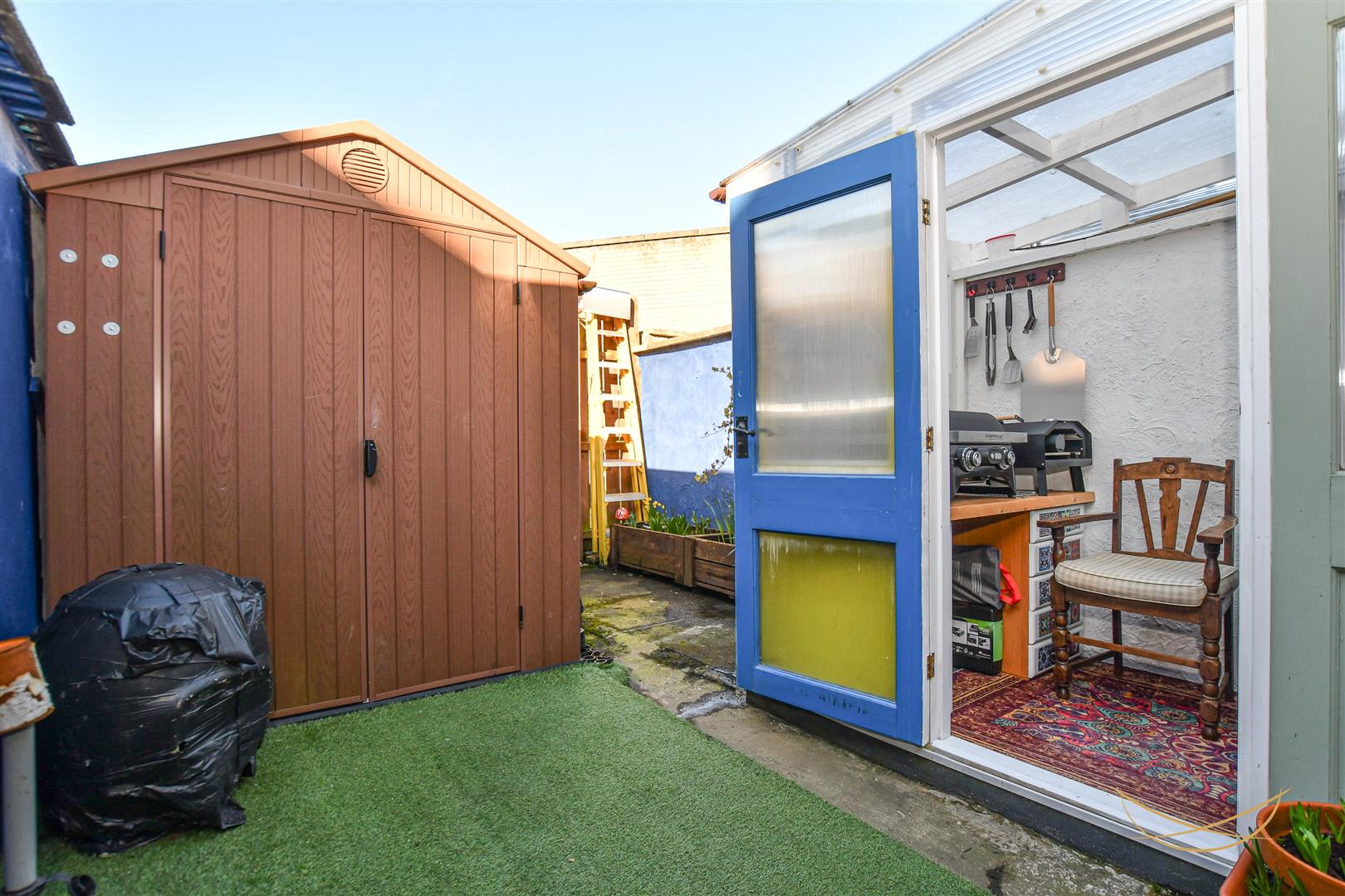Enclosed rear garden with paving and artificial grass. Shed with built in workbench. Outdoor toilet. Utility area.