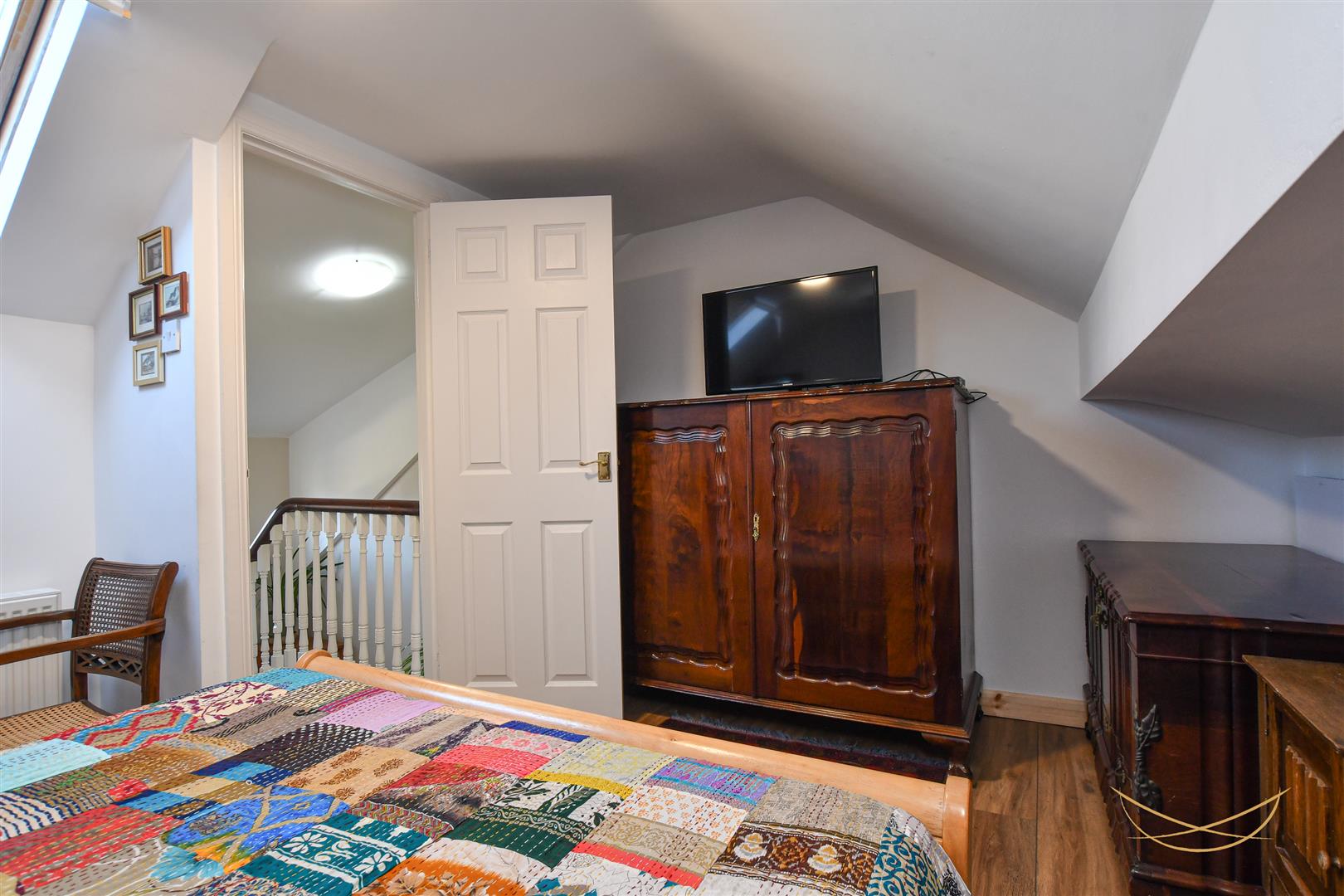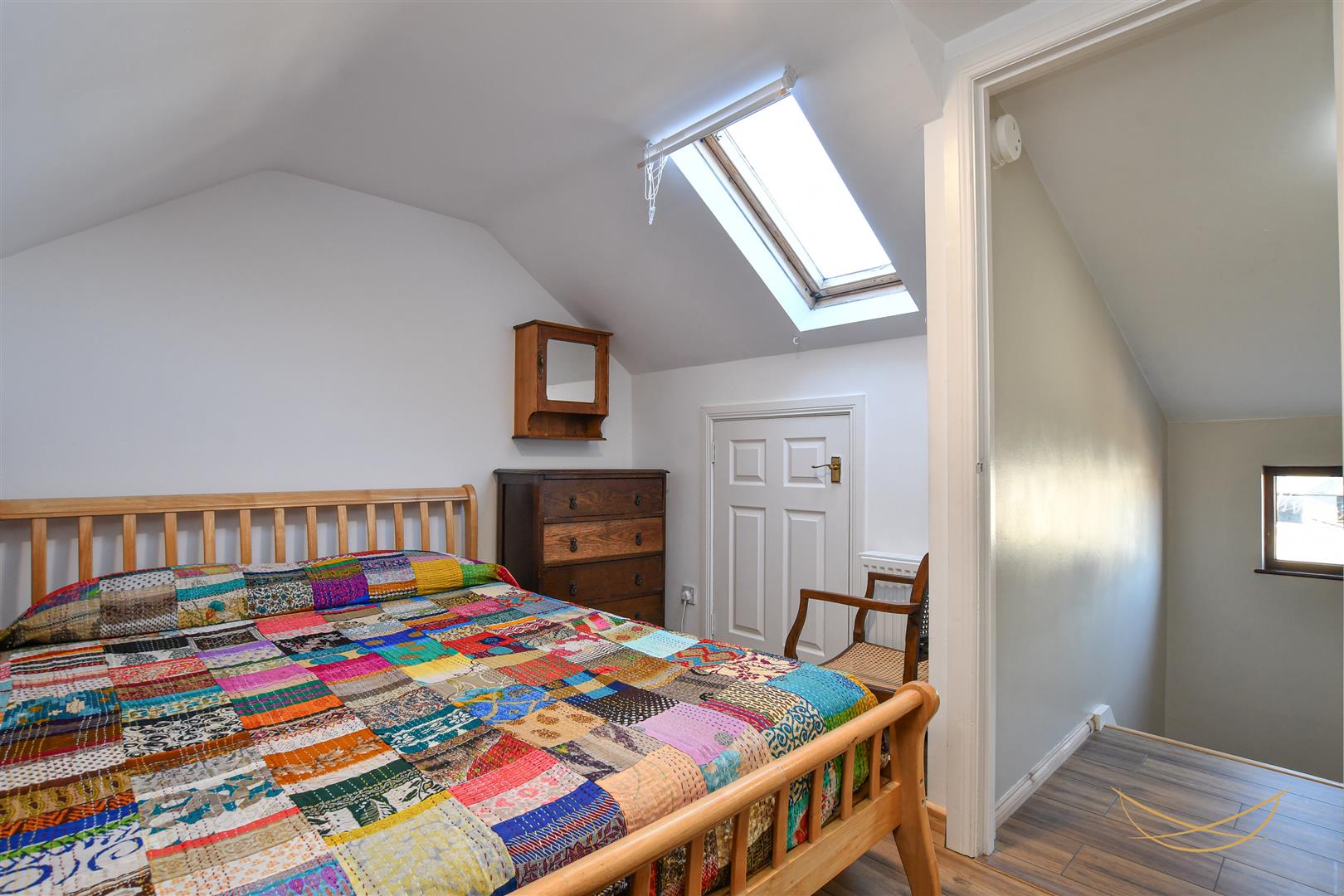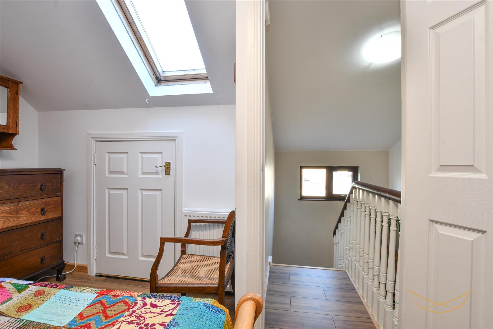 Laminate wood effect flooring. Cornice ceiling.