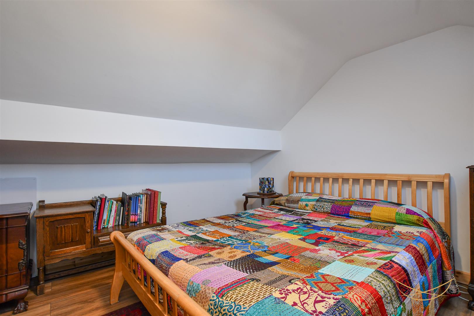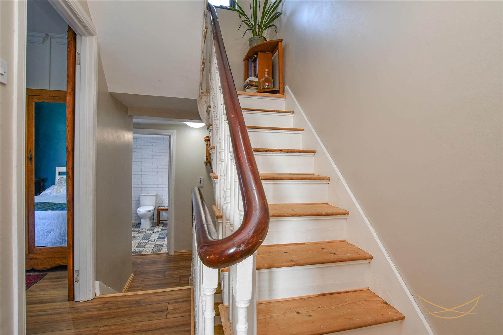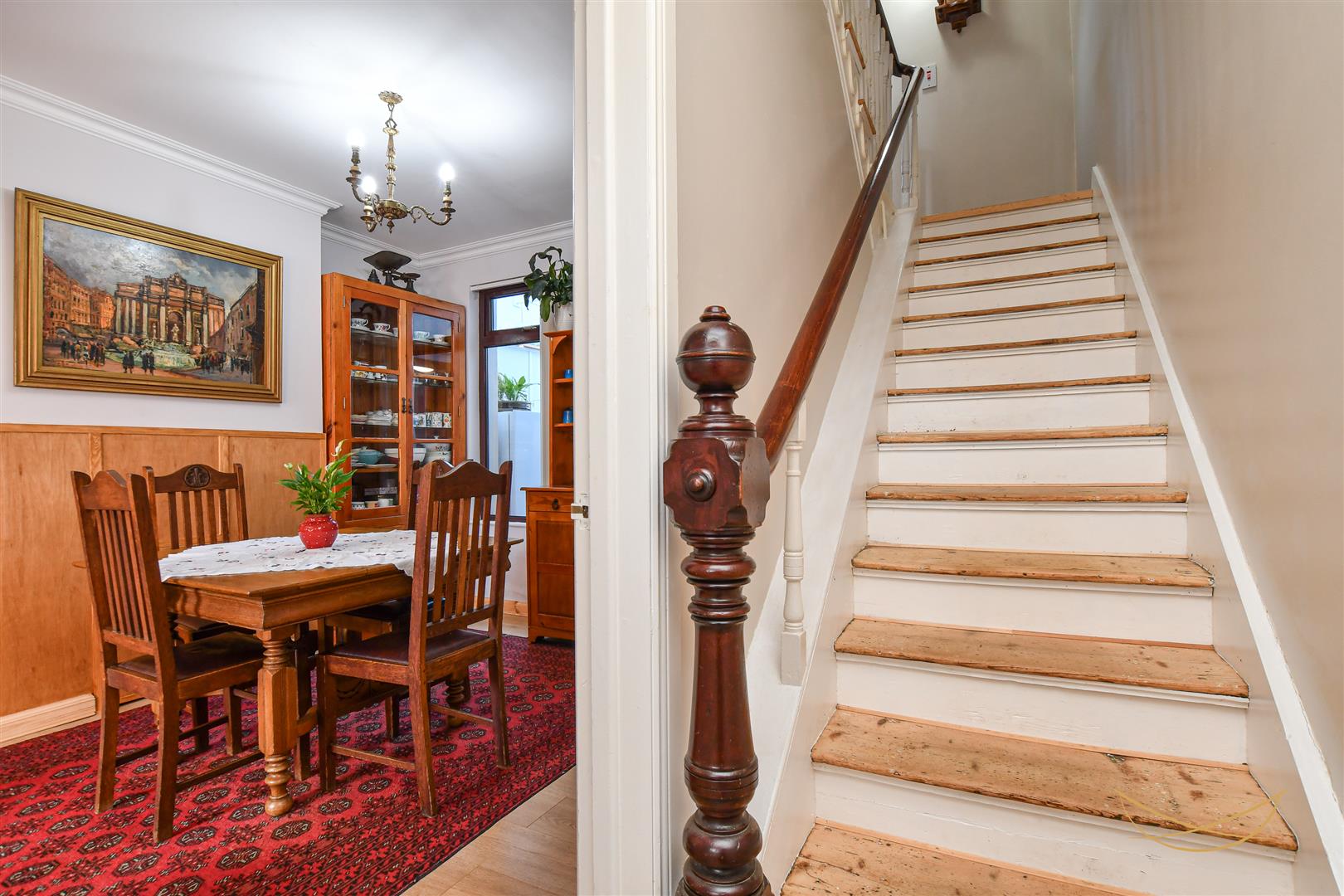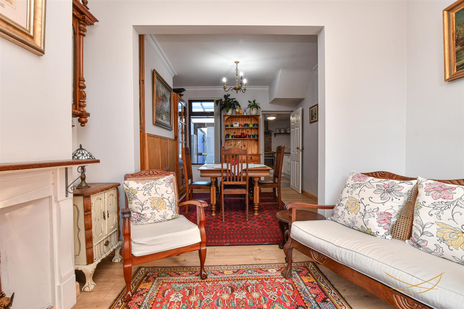 Laminate wood effect flooring. Cornice ceiling.
