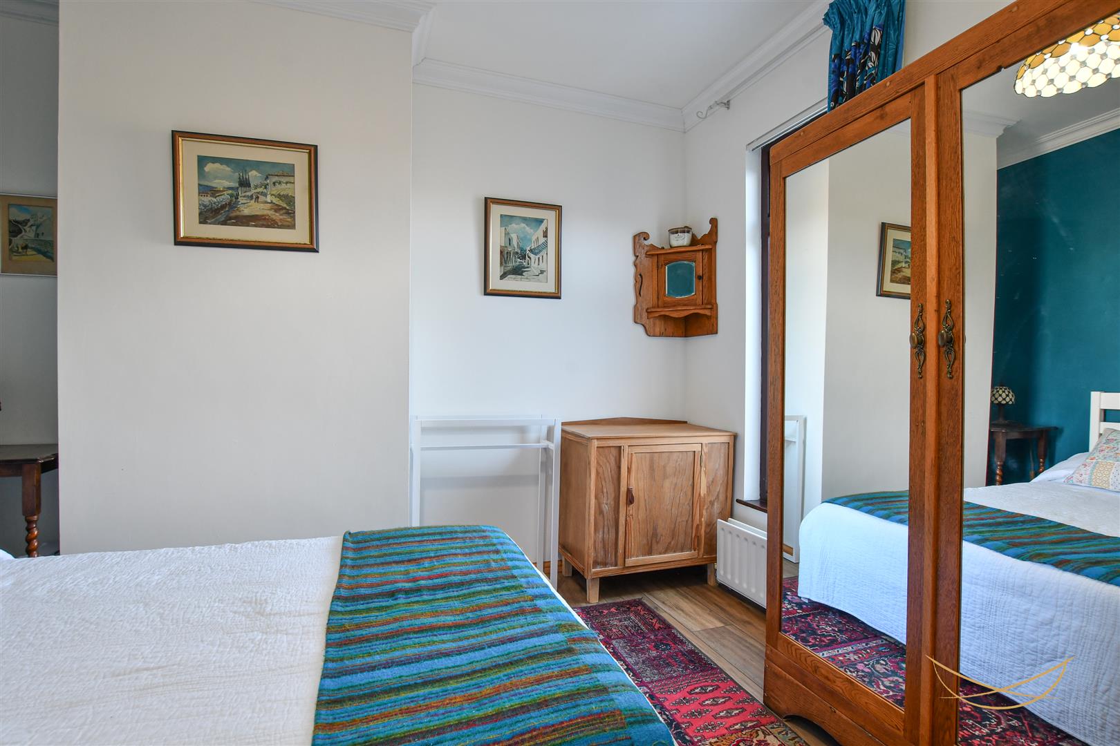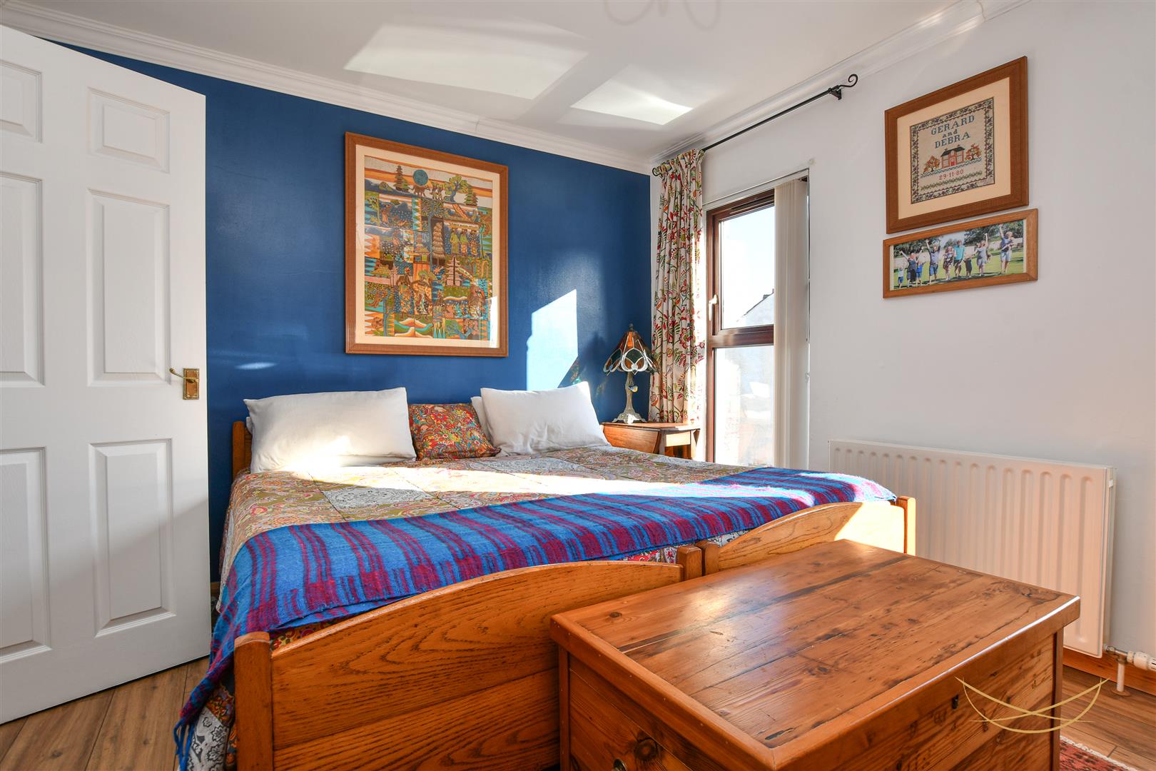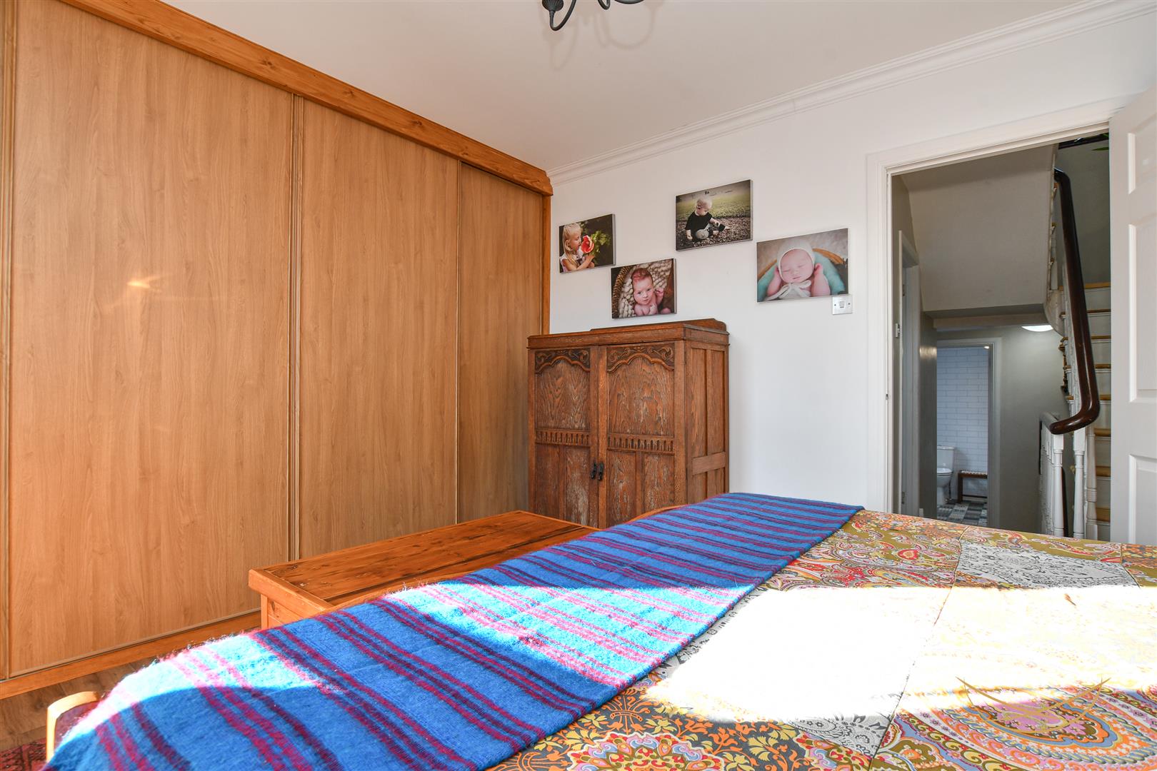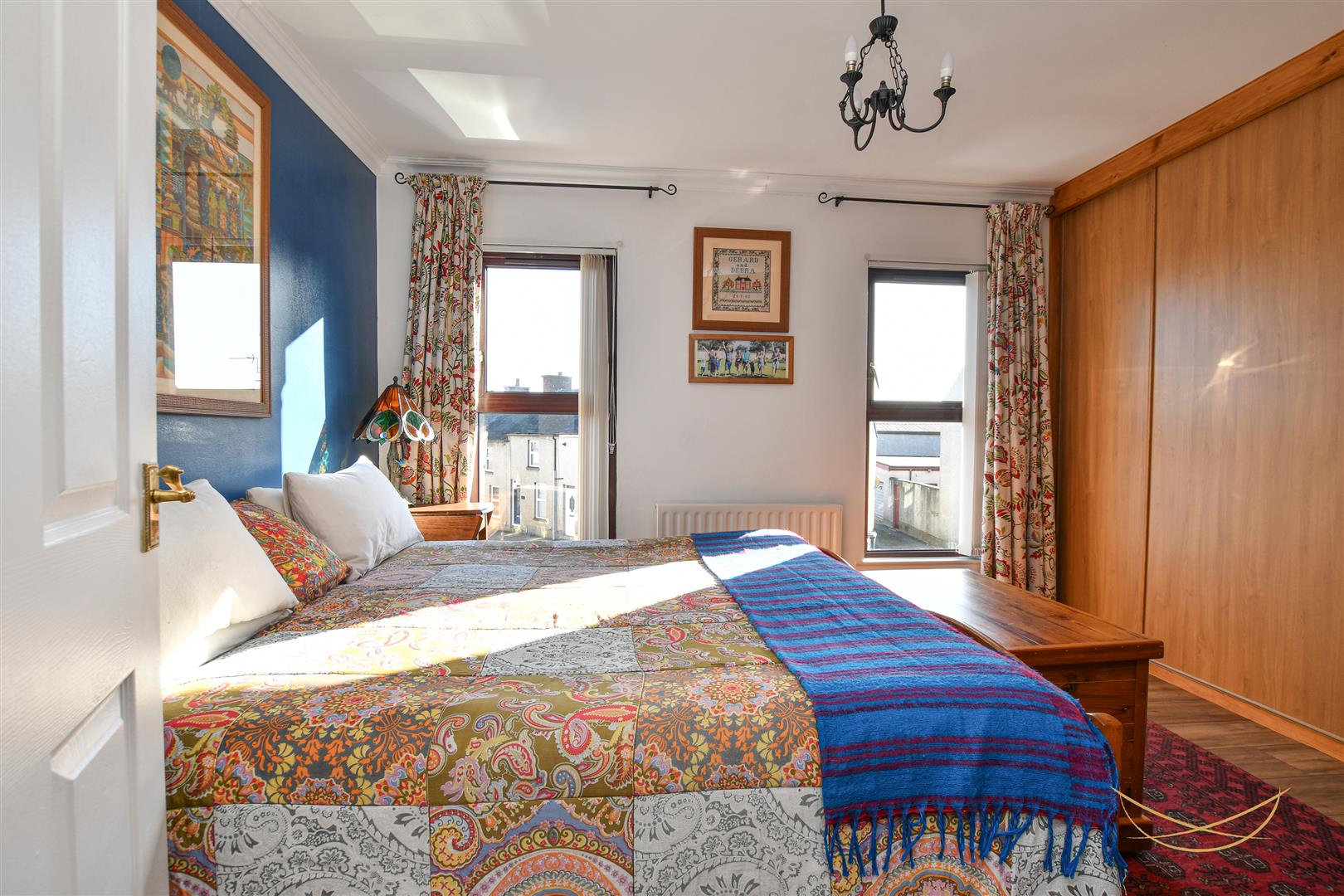 Laminate wood effect flooring. Built in wardrobe. Cornice ceiling.
