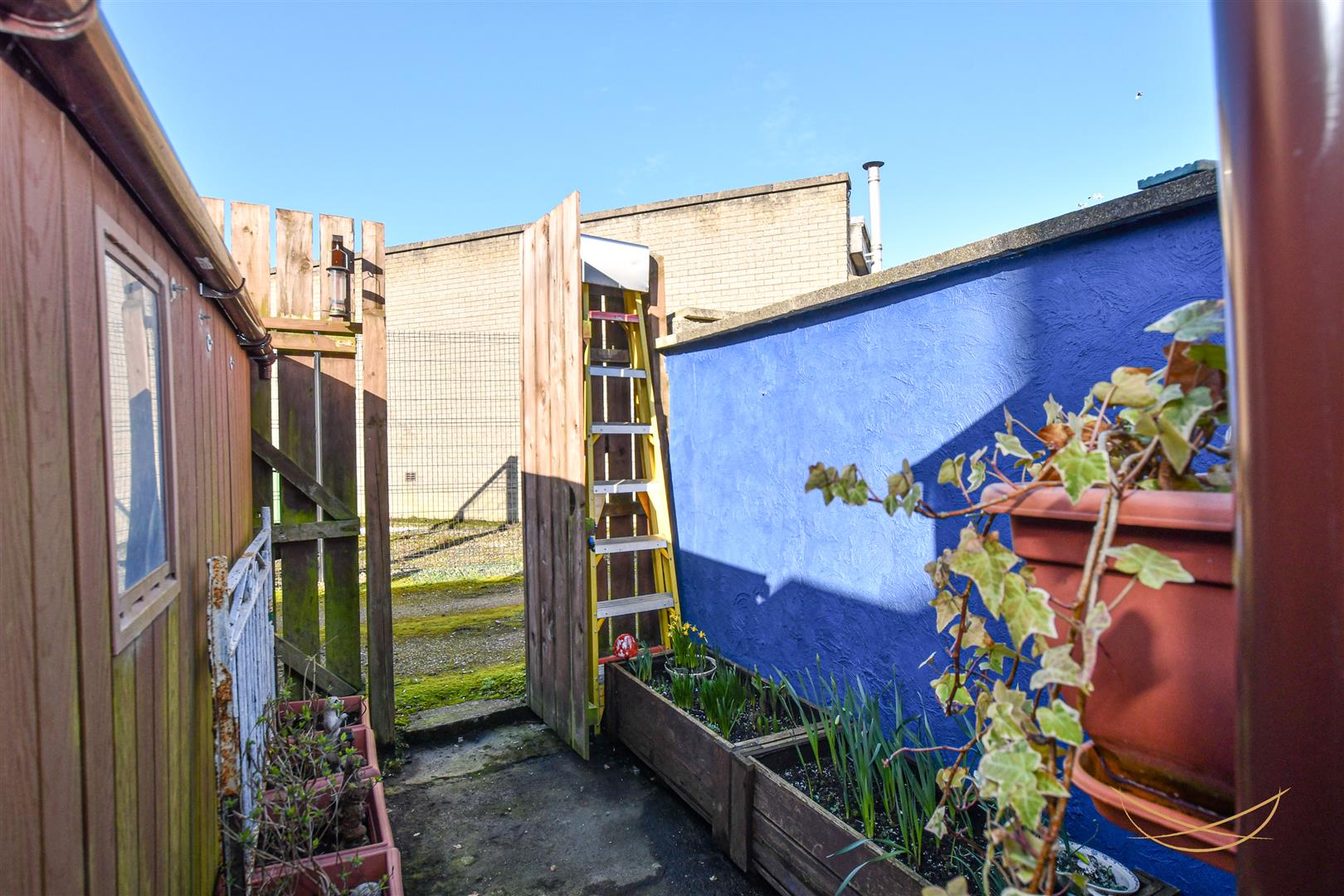 Rear enclosed yard with shed and outdoor toilet