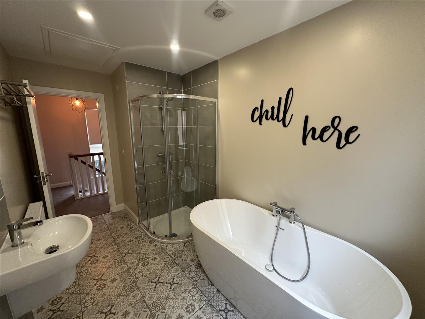 Further benefits include a separate utility room and four well-proportioned bedrooms, with the master enjoying a stylish ensuite. The family bathroom is finished to a high standard, boasting a white four-piece suite with a freestanding bath.