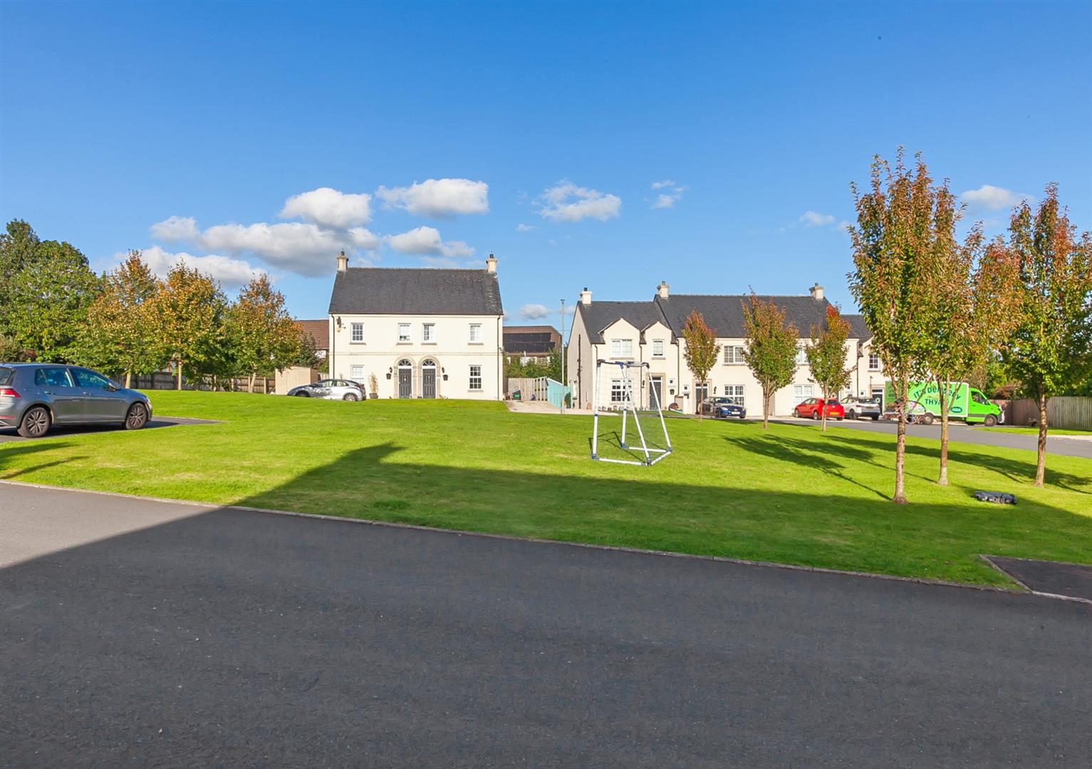 View towards landscaped green.