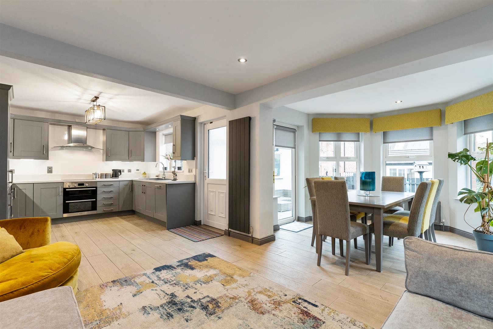 The property comprises entrance hall, furnished cloakroom, bay fronted lounge with gas fire in granite fireplace, kitchen through living/dining room with modern fitted kitchen, open arch leading to sun lounge, four well-proportioned first floor bedrooms, to include principal bedroom with deluxe en suite shower room, and separate deluxe family bathroom, with contemporary three piece suite.