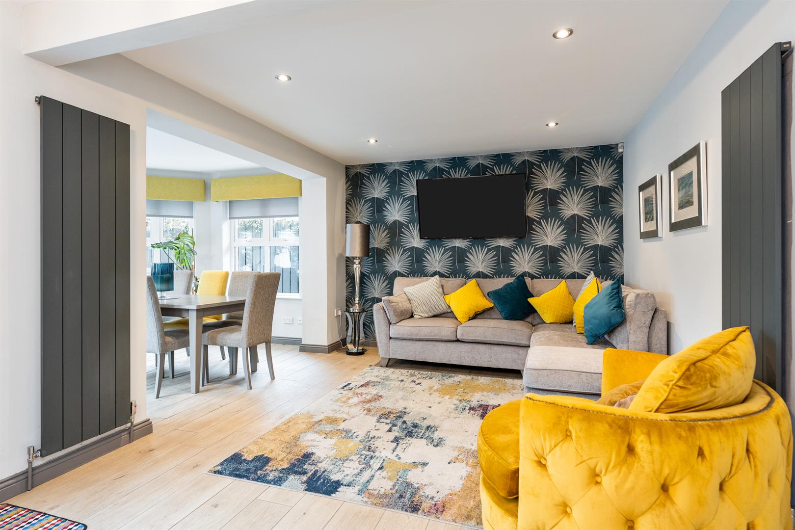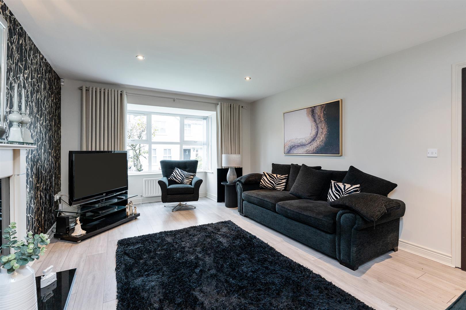 Box bay window to front elevation. Gas fire in granite fireplace with matching hearth and contrasting surround. Wood laminate floor covering.